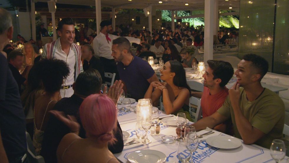 Panos wants everyone to go around the table and talk about their favorite Mykonos moment, as though they've just enjoyed a relaxing vacation rather than the most difficult and humiliating month of their lives. I looked away for a second and now they're playing a montage of Brent and Sara's doomed romance. Sad slow club music plays.
