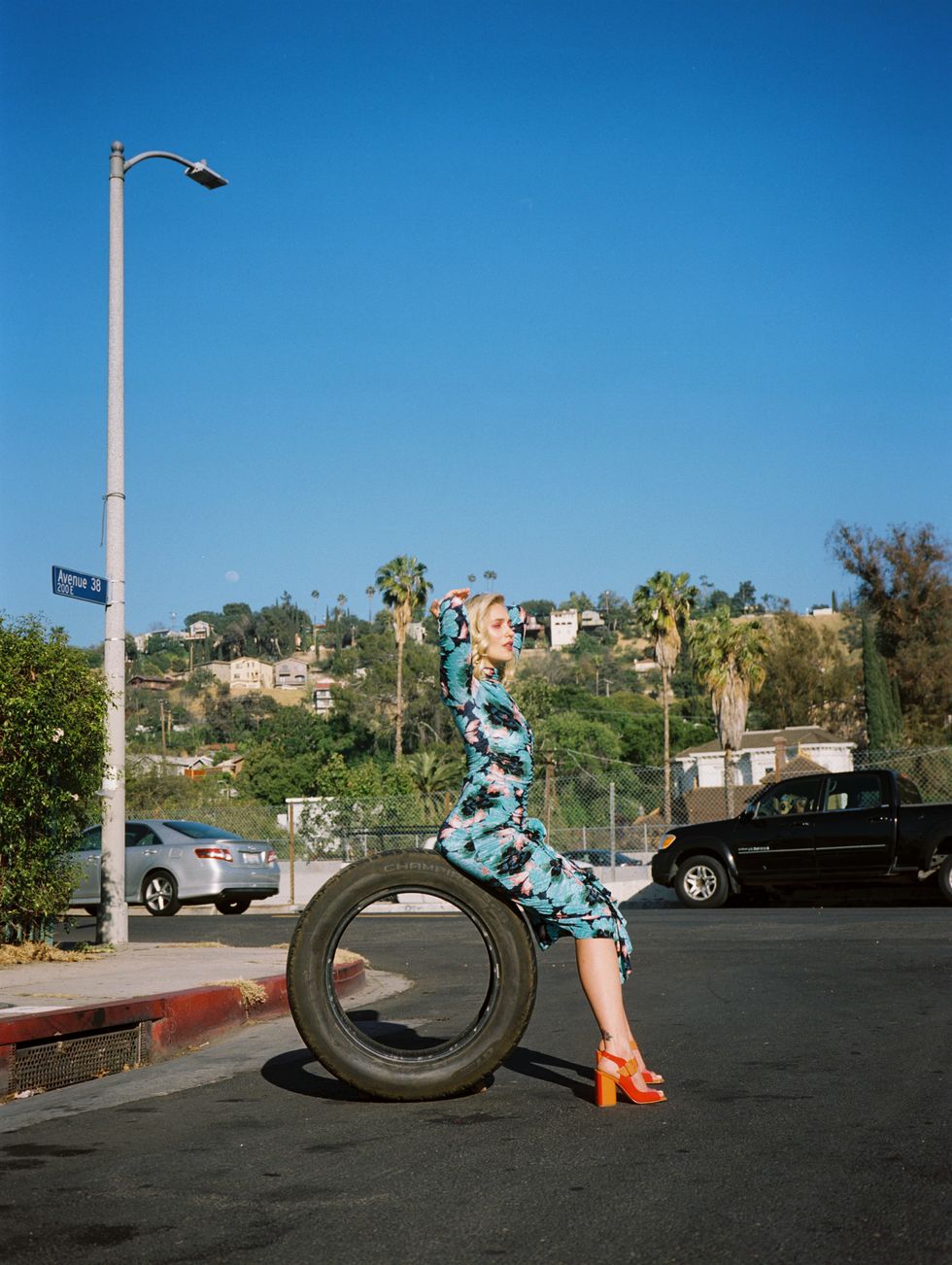Dress by Kenzo, Earrings by Jiwinaia, Heels by Baldini