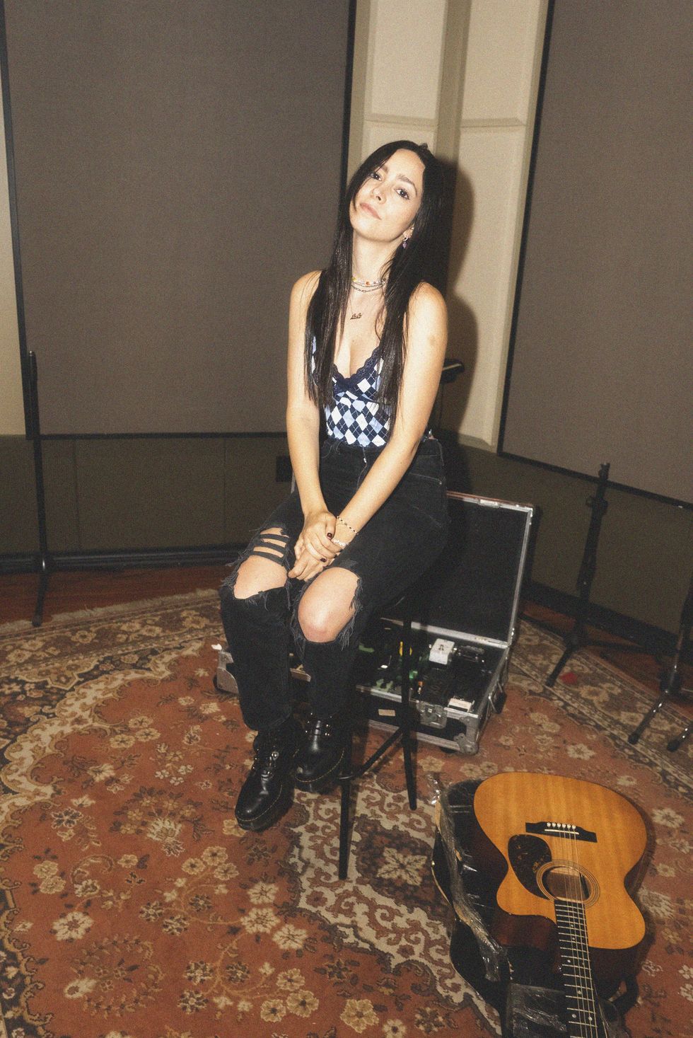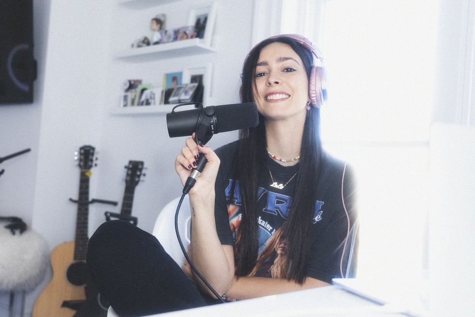 My bedroom (specifically my bed) is where all of my song ideas start. This is my favorite mini black martin guitar. I'll start an idea like this and record a voice note, and then I'll take it to my producers to help me make it into a full produced song.