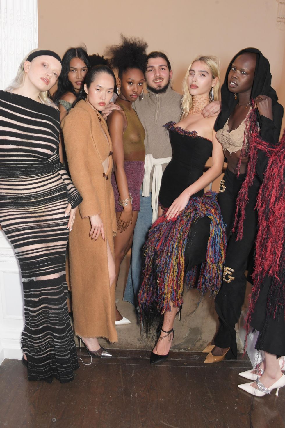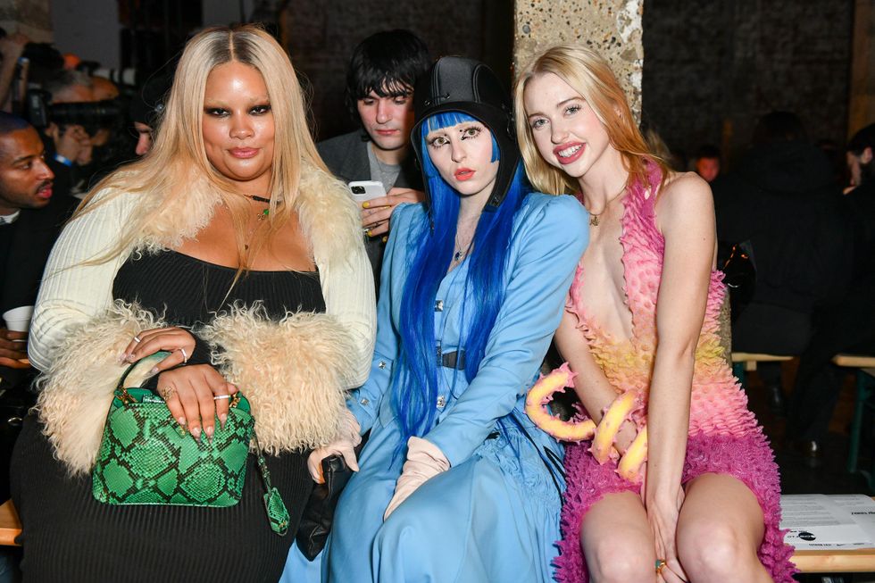George Trochopulos' off-schedule London Fashion Week show featured a buzzy front row that included Jourdan Dunn and Drag Race UK alum Tayce. Amelia Gray Hamlin flew from New York to open the Greek designer's big debut in a collection that featured nods to his signature stripe motifs and deconstructed knits.