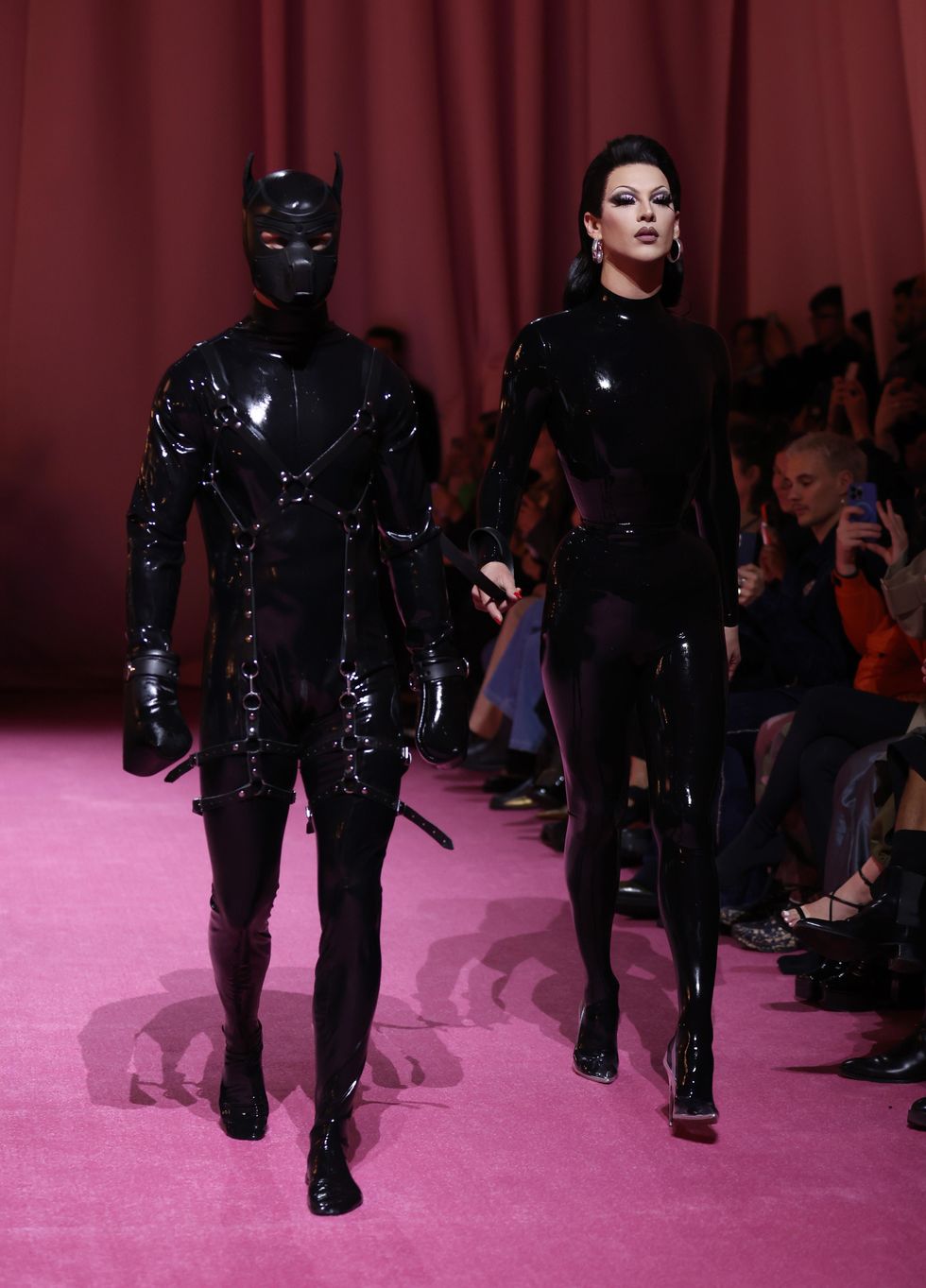 Richard Quinn has always had a latex and fetish streak, which made drag star Violet Chachki's dominatrix moment at his runway show — complete with a leash and latex human dog — a fitting gesture.