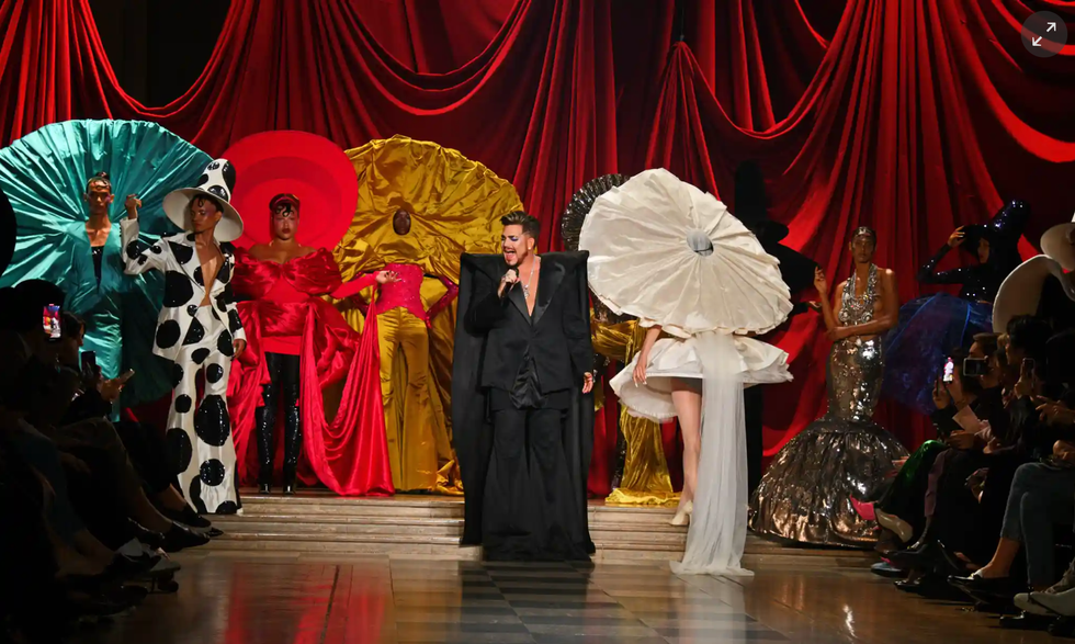 Harris Reed was carrying a big secret the day of his fashion show, as the industry later learned: he's to be the new creative director of Nina Ricci, the Parisian womenswear and fragrance brand with a long history. Ahead of London Fashion Week, he made a plea on Instagram to “to support the small brands" on the schedule. His spectacle of a show, a fluid debutante ball, featured crinolines and supersize hats as well as a performance by Adam Lambert.