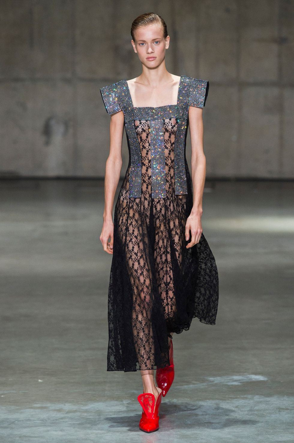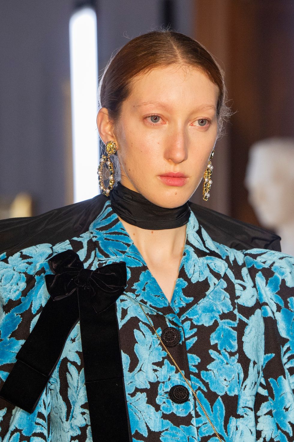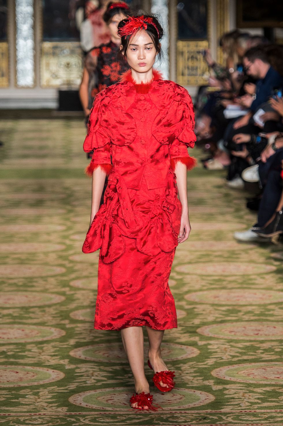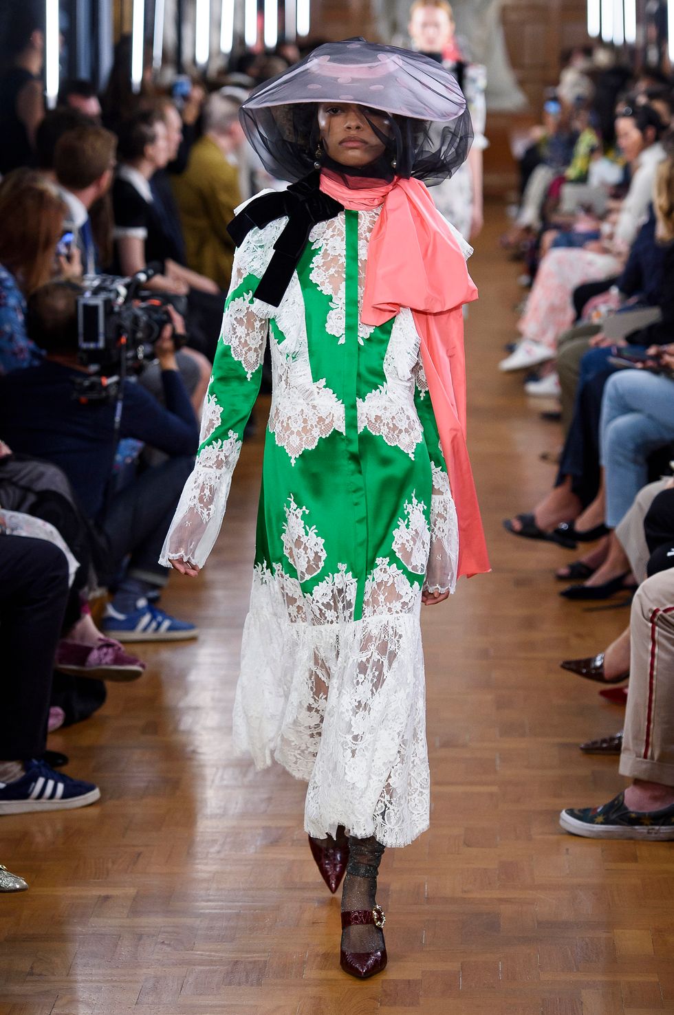 At London Fashion Week, ladylike embellishments including bows, veils, and plenty of sparkle sat in contrast to bold patterns from animal prints and checkerboards to eerie faces from bygone eras. Poppy red and ombre effects kept things fresh on the color front, while bulky handbags and puffy sleeves made grand proportional statements. See 10 of our favorite trends from LFW, below.