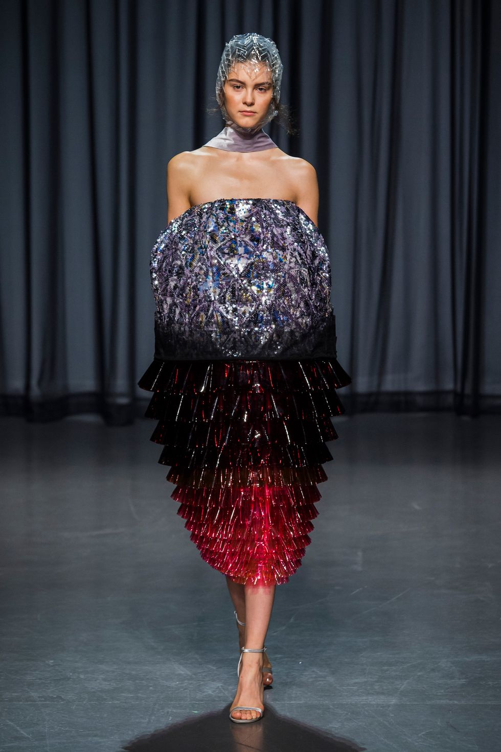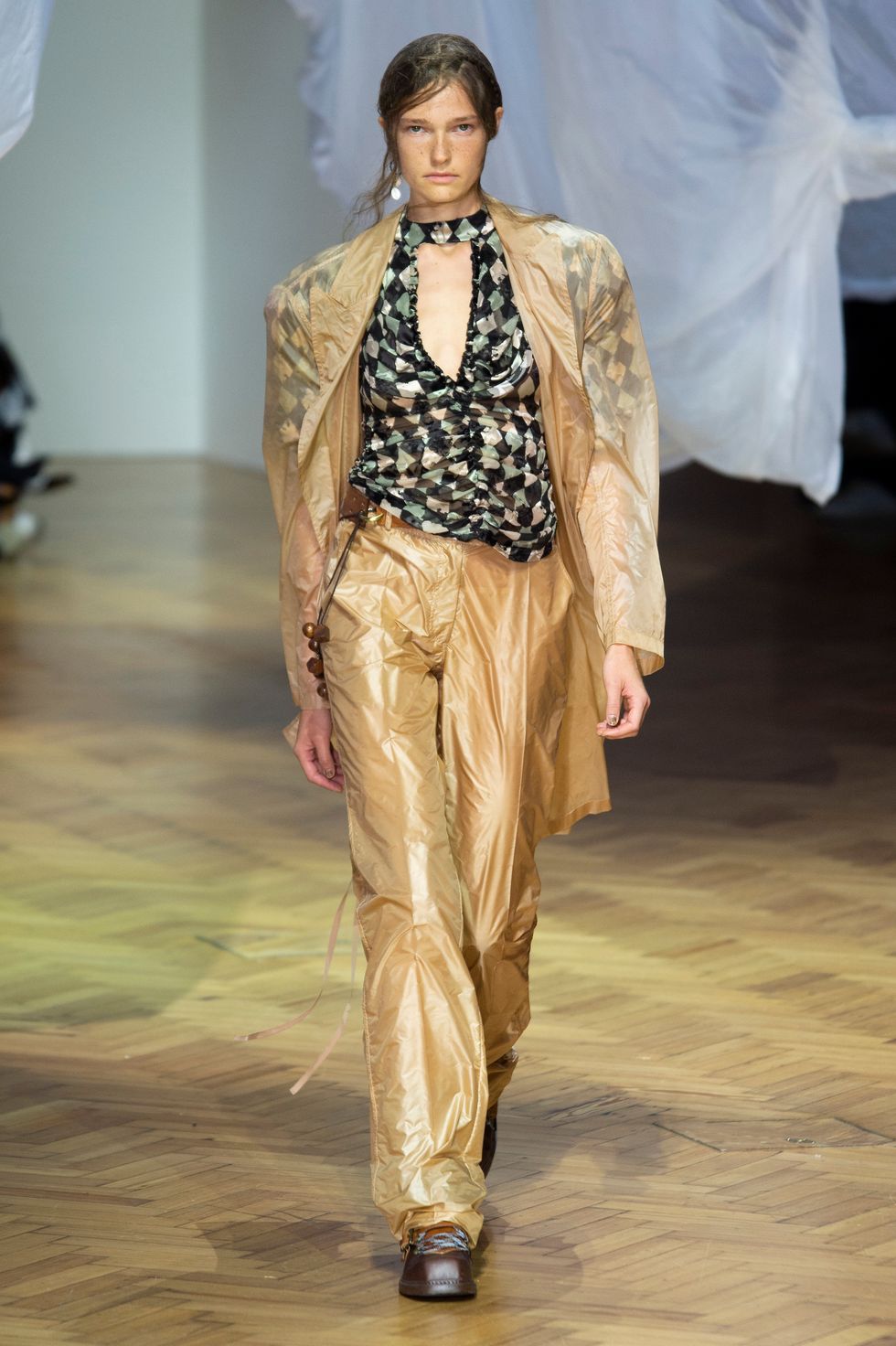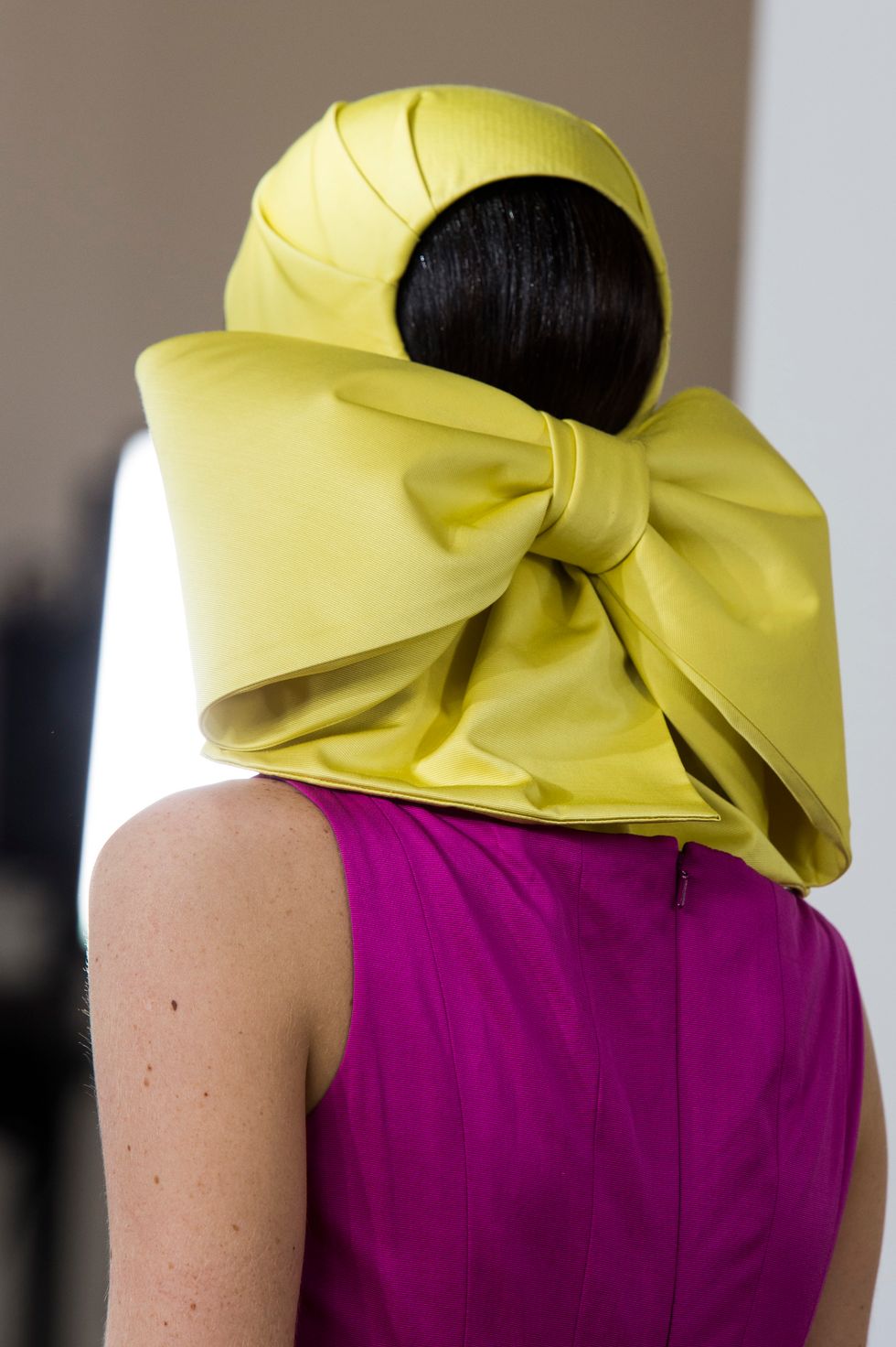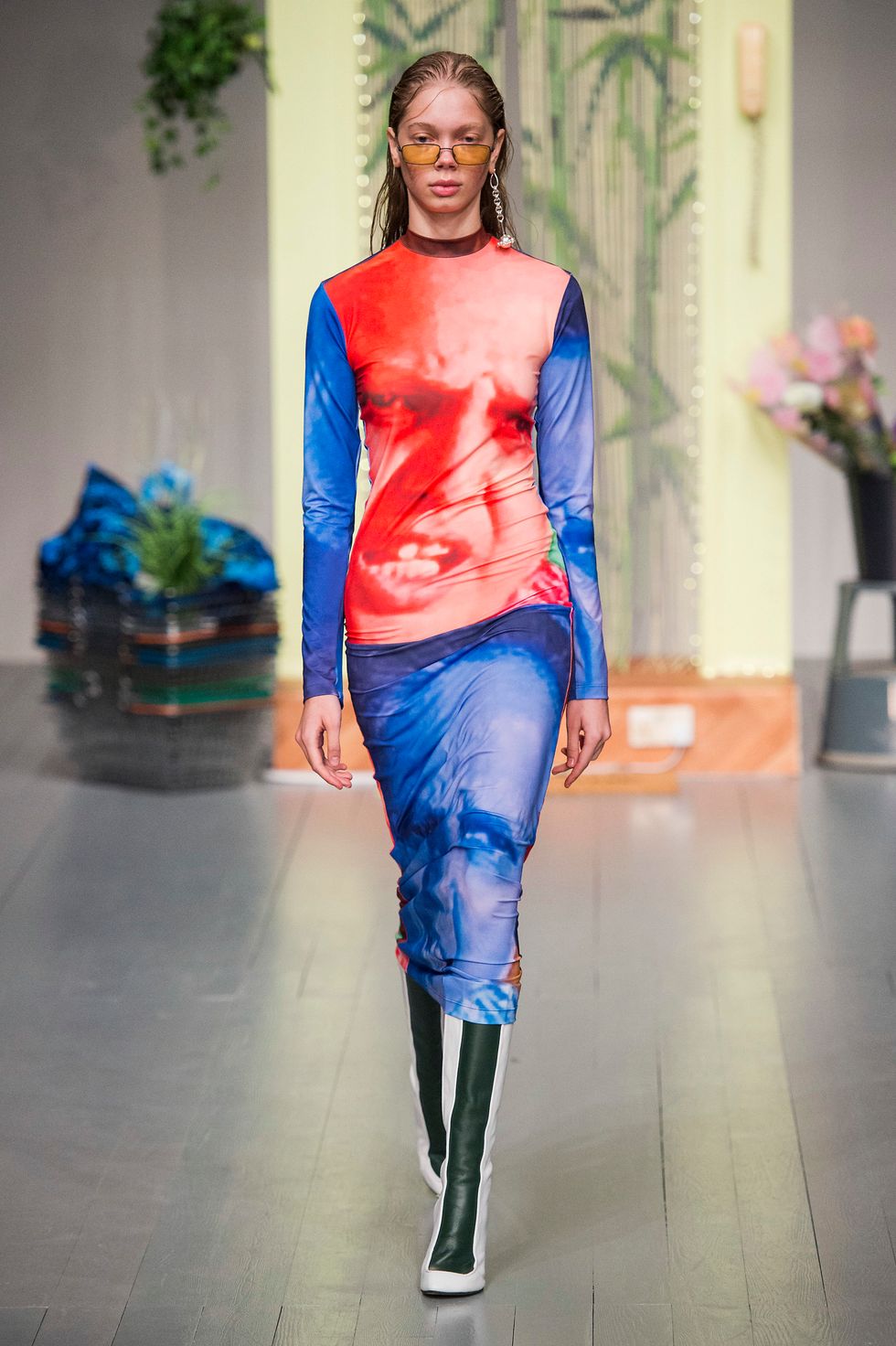 At London Fashion Week, ladylike embellishments including bows, veils, and plenty of sparkle sat in contrast to bold patterns from animal prints and checkerboards to eerie faces from bygone eras. Poppy red and ombre effects kept things fresh on the color front, while bulky handbags and puffy sleeves made grand proportional statements. See 10 of our favorite trends from LFW, below.