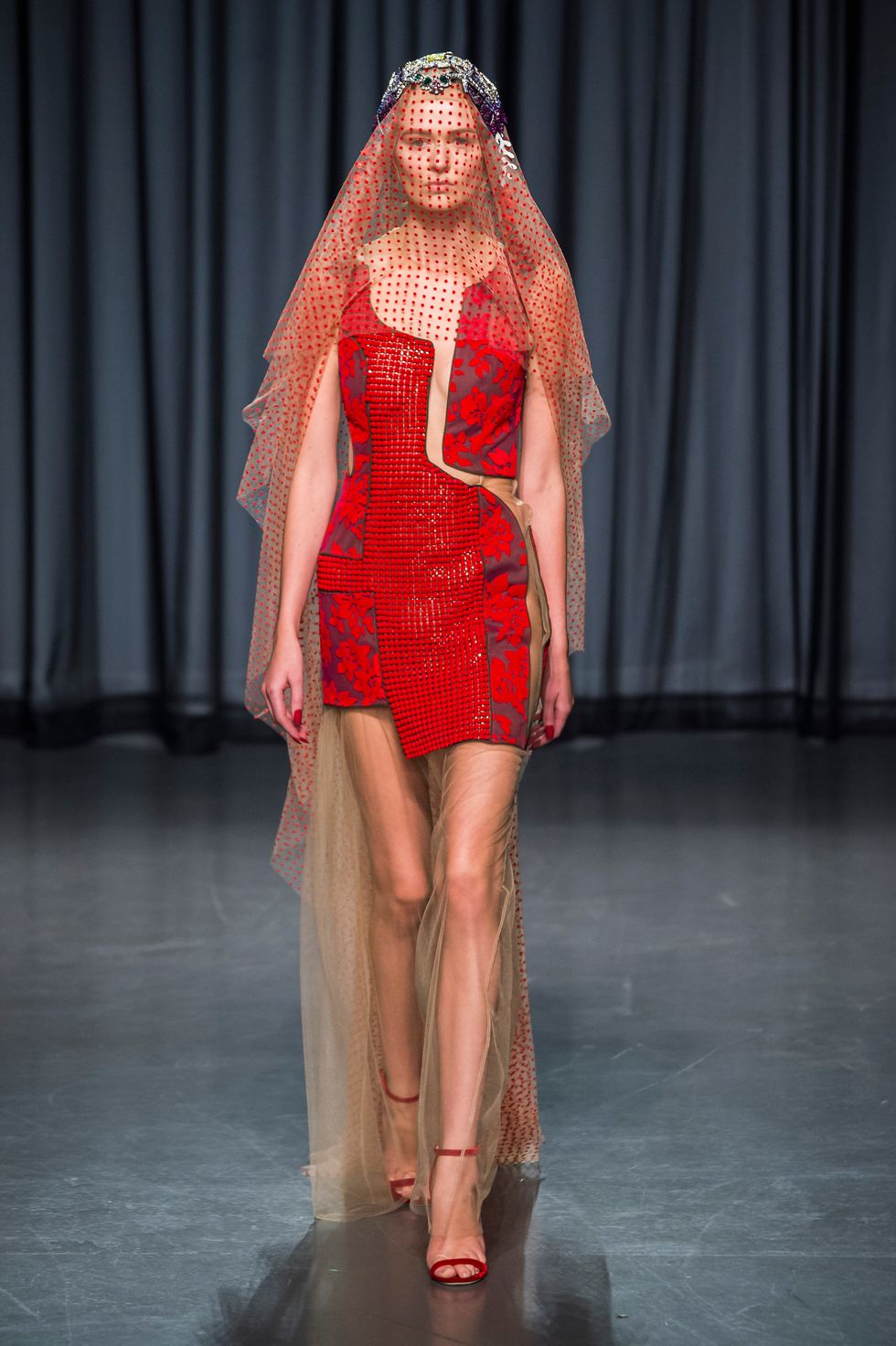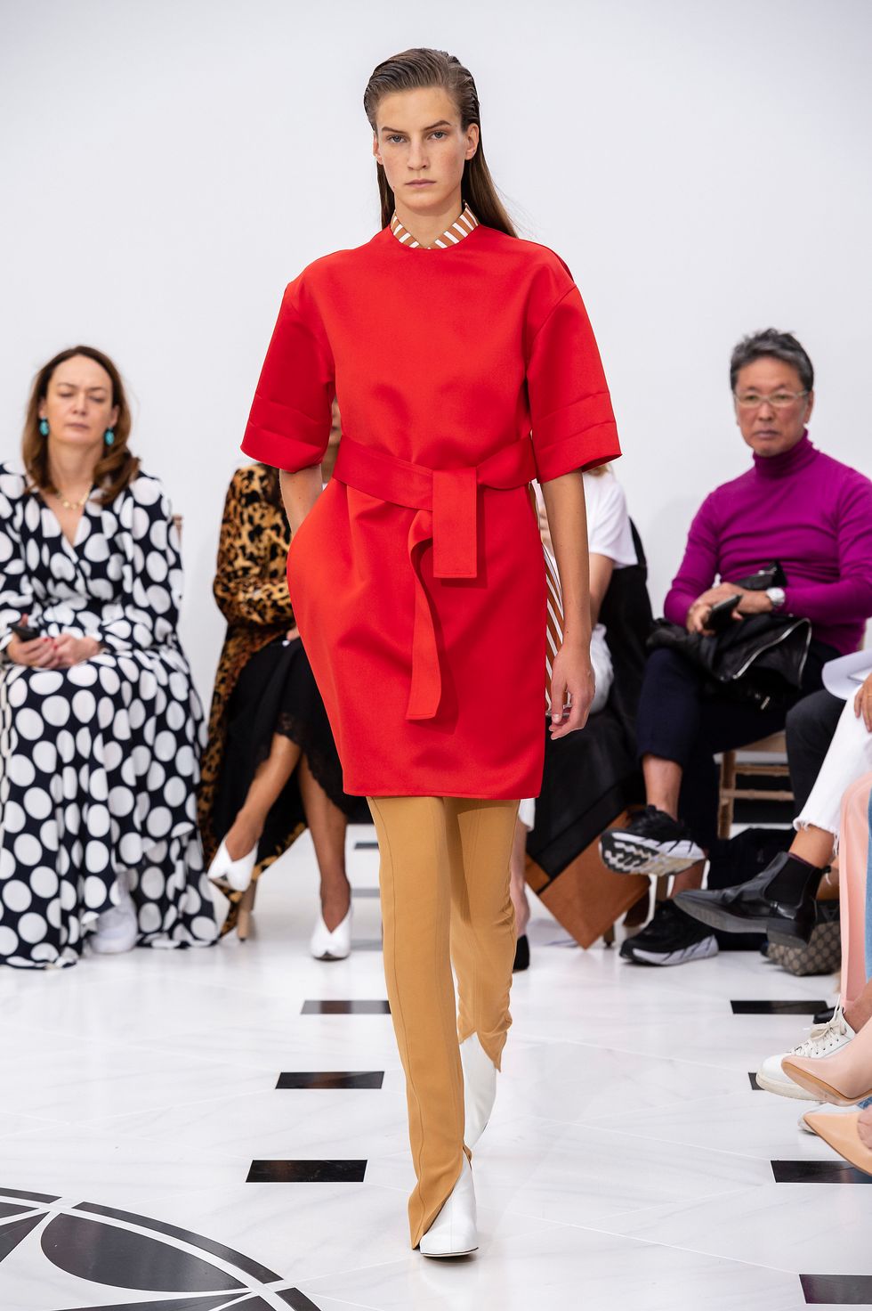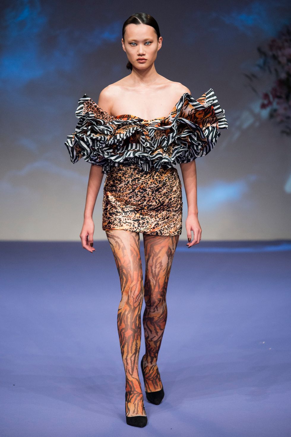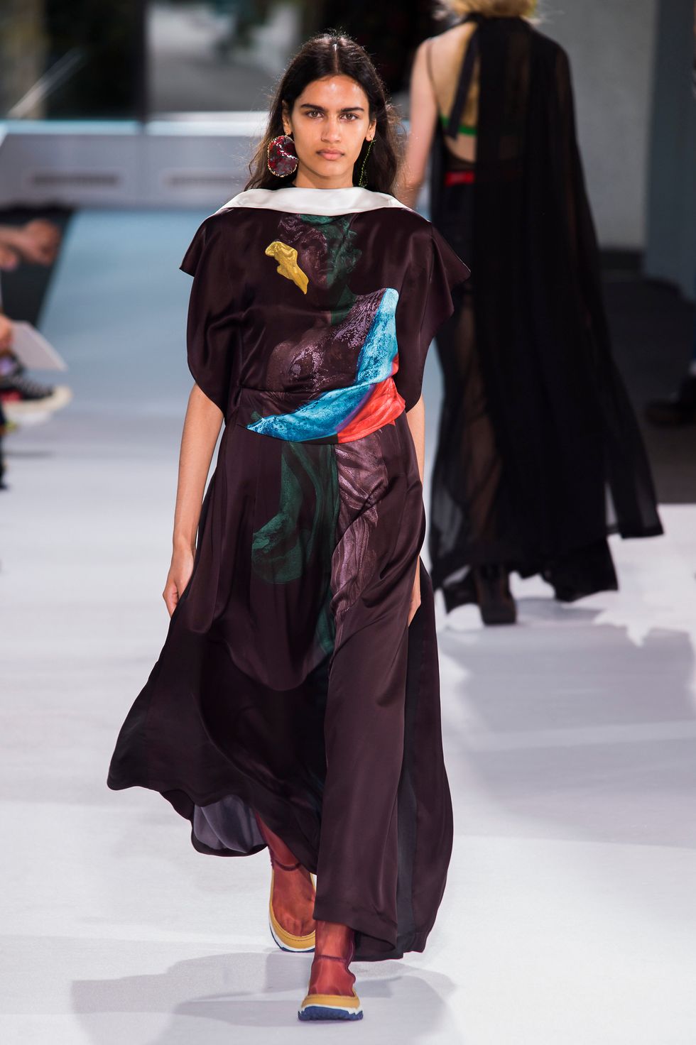 At London Fashion Week, ladylike embellishments including bows, veils, and plenty of sparkle sat in contrast to bold patterns from animal prints and checkerboards to eerie faces from bygone eras. Poppy red and ombre effects kept things fresh on the color front, while bulky handbags and puffy sleeves made grand proportional statements. See 10 of our favorite trends from LFW, below.