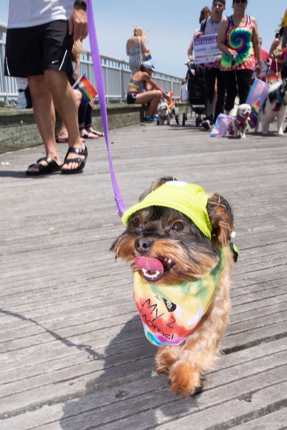 Parents and the furry friends were decked out in Pride apparel. Rainbow ribbons, barrettes, leashes, colors, shirts (both the furry friends and parents), pride was alive on the boardwalk. The parade was dominated mainly by canines, but a big shout out to cats, rabbits, ferrets and the one rat that made its way down to the boardwalk.
