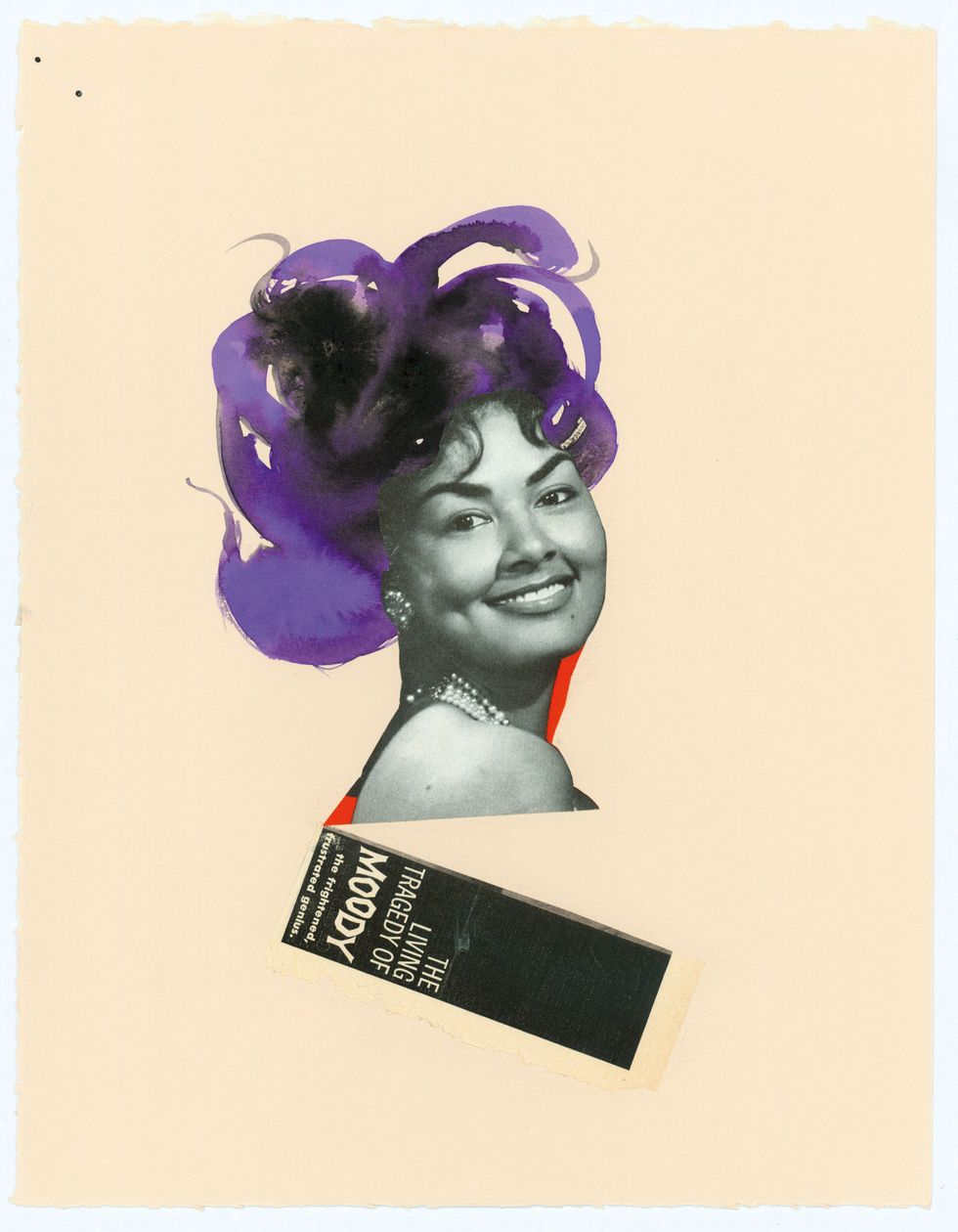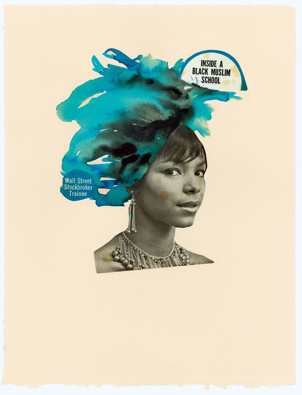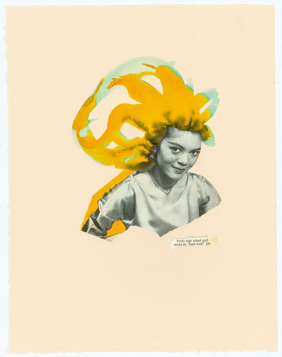 Simpson has worked to represent the significance of black hair in the past. She once told The Paris Review that she was fascinated with the images from her grandmother's copies of Ebony and Jet when she found them while cleaning up her studio. She said, "I try to keep the collages very simple, as well as the character, the facing, and all the tropes of advertising from those particular moments. In a lot of the advertising from the sixties and seventies, there's this whole focus on before and after in terms of makeup and appearance. The forlorn, concerned expression is before the makeover. They are amazing portraits, even for that time, because there is a subtext of political strife in terms of the before and after during the civil rights era."