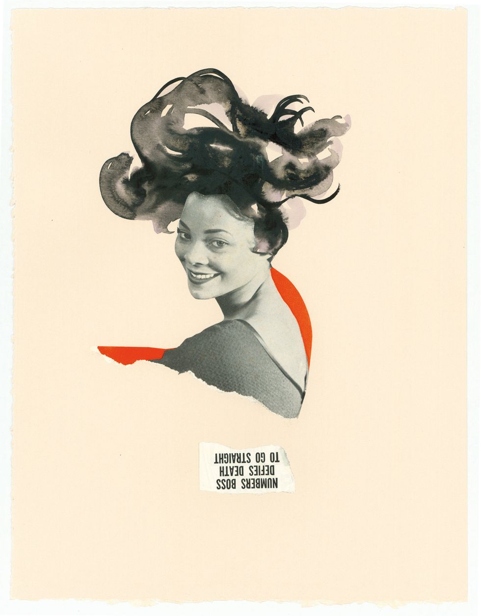 Artist Lorna Simpson's work focuses on the intersections of race, gender, and memory. Her most recent book, Lorna Simpson Collages, published via Chronicle Books, uses advertising images of black people found in old issues of Ebony and Jet to represent the beauty of black hair. The book features 160 images that were made from 2011 to 2017, and also contains an introduction by poet Elizabeth Alexander, who writes, "Black women's heads of hair are galaxies unto themselves, solar systems, moonscapes, volcanic interiors."