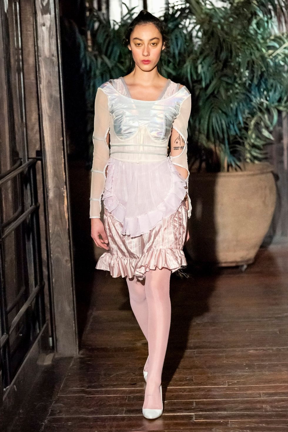 But I bring up RISD only because the Lou Dallas fall collection had such a great hook: Hanley showed art school girls. Get it? Like naughty schoolgirls with crippling debt from MFAs!