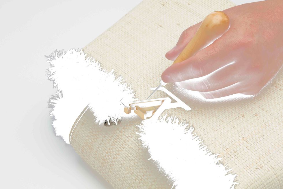 New York-based artist Josh Smith is known for his signature "name" paintings, which was recreated by embroidering the bag's cotton canvas exterior with white stitches to replicate the effect of brushstrokes. The letters of his name are printed across the bag, and his "Palm #3" painting is printed in the silk inner lining. LV's logo is metal inlaid with wood while the handle is made of pure pear wood.