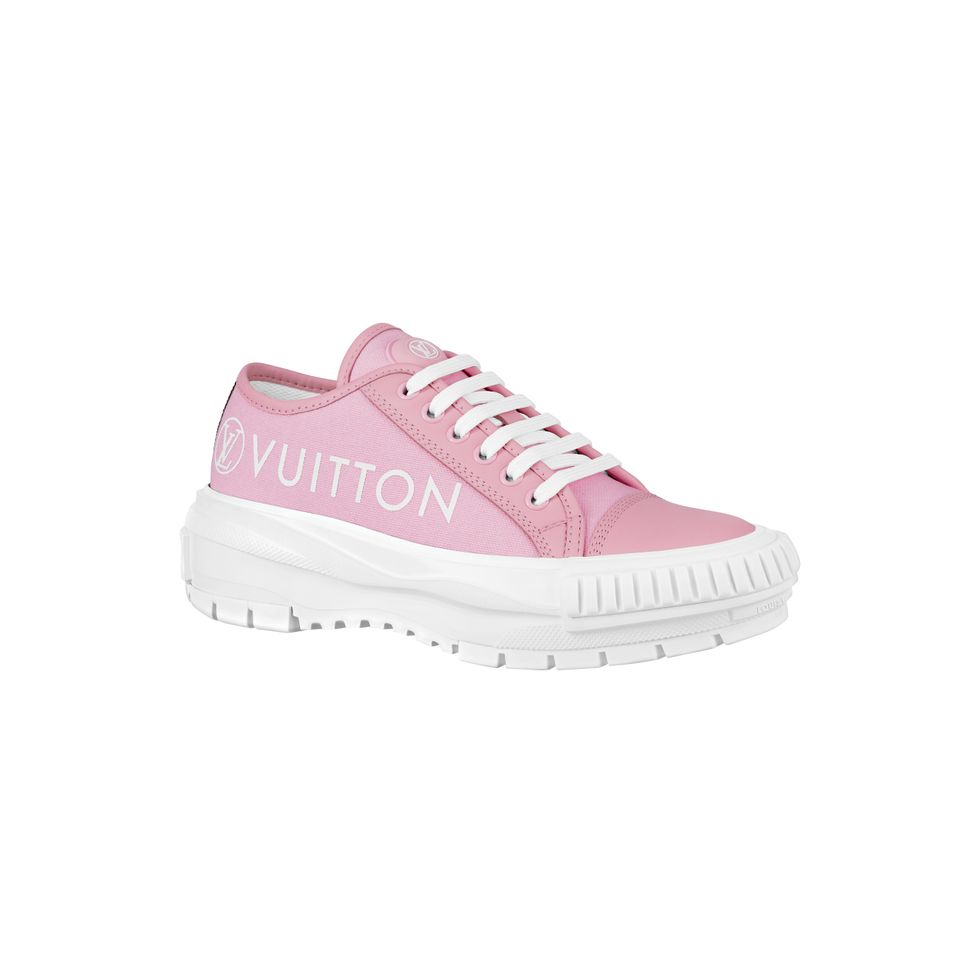 In the images, both girls show off the brand's two latest shoe launches (now available in all Louis Vuitton stores worldwide): the LV SQUAD, a chunky sneaker with an oversized rubber sole, and the LV SUNSET, a flat slide with oversized velcro strap. Each style comes in different colors as well as a Vuitton rubber label, and they're both part of Louis Vuitton's Pre-Fall 2021 collection designed by Nicolas Ghesquière.