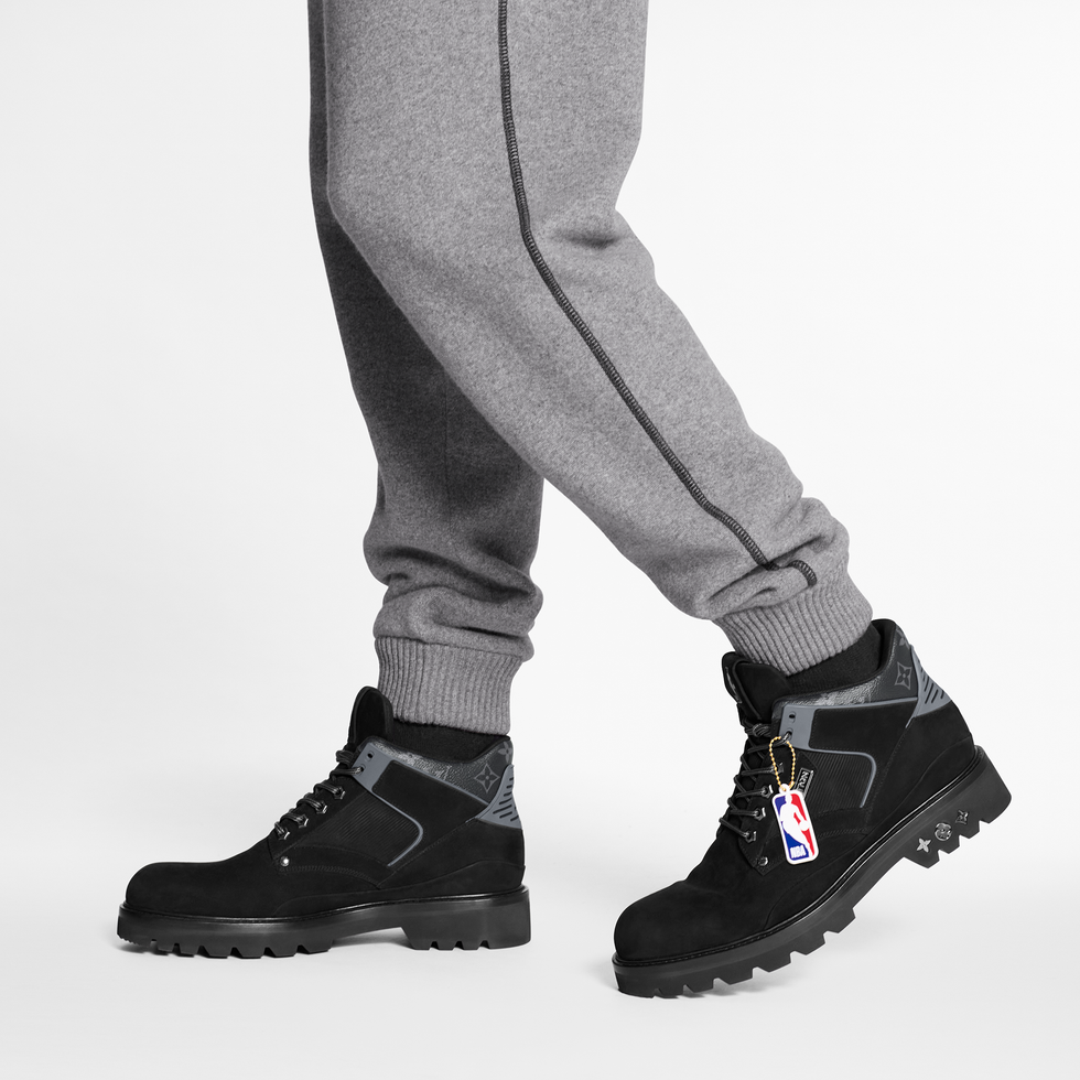 Elsewhere in the range, the NBA's emblem intermingles with Louis Vuitton's existing motifs across a wide range of shoes and accessories. Multi-functional backpacks front the sports association's signature red, white and blue palette, while chunky-soled leather derbies and classic loafers alike meld the crests of both brands on the foot-bed. Jewelry enlists the NBA's iconography as distinct pendants across necklaces, rings and bracelets, and as a final touch, the partnership also included a bespoke Louis Vuitton Trophy Travel case for the world-renowned Larry O'Brien Trophy.