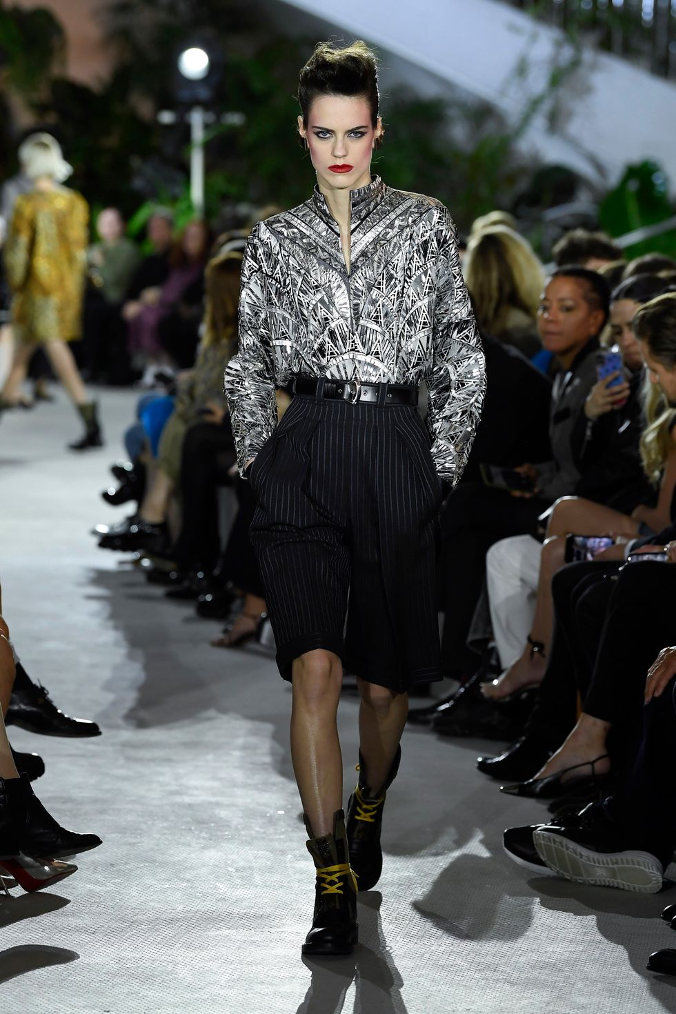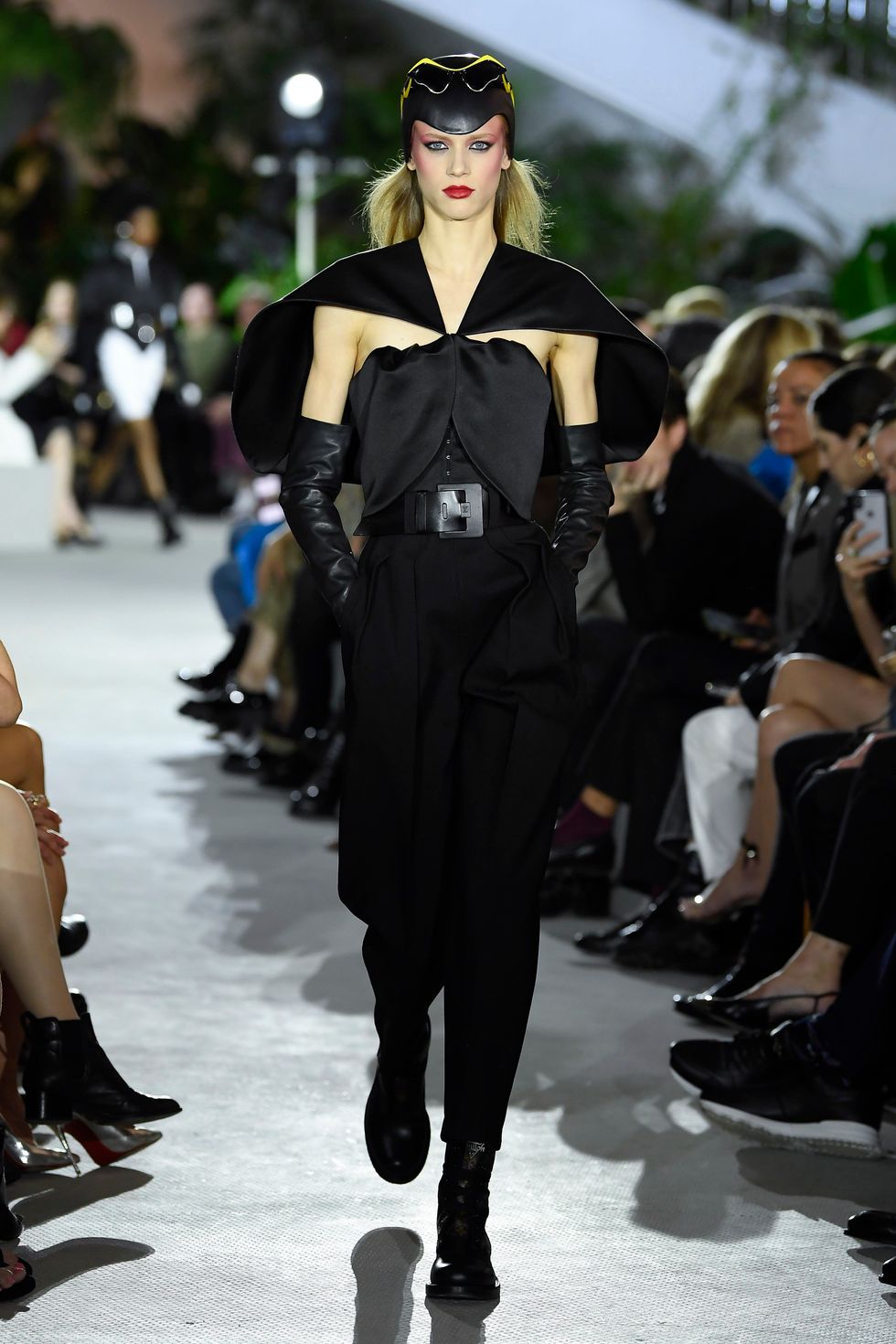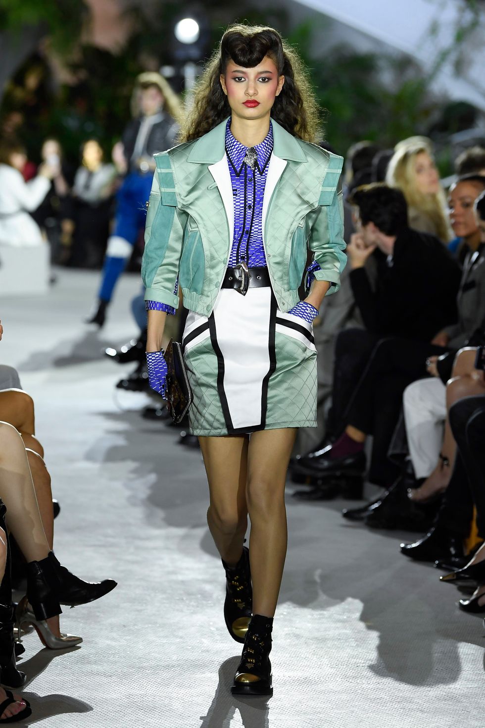 As as starting point for Ghesquière's inspiration, the designer recounted his own travel experiences saying, "I was lucky enough to have landed at the TWA Flight Center in the late '90s. It was something I could never forget. This place was forgotten for 20 years, and now has come back to life. It's like a sanctuary that's been revived and seeing it enchant anew in a different iteration, as a hotel, is a great pleasure. It's about rediscovering of an uncommon place that yet is a part of American heritage."