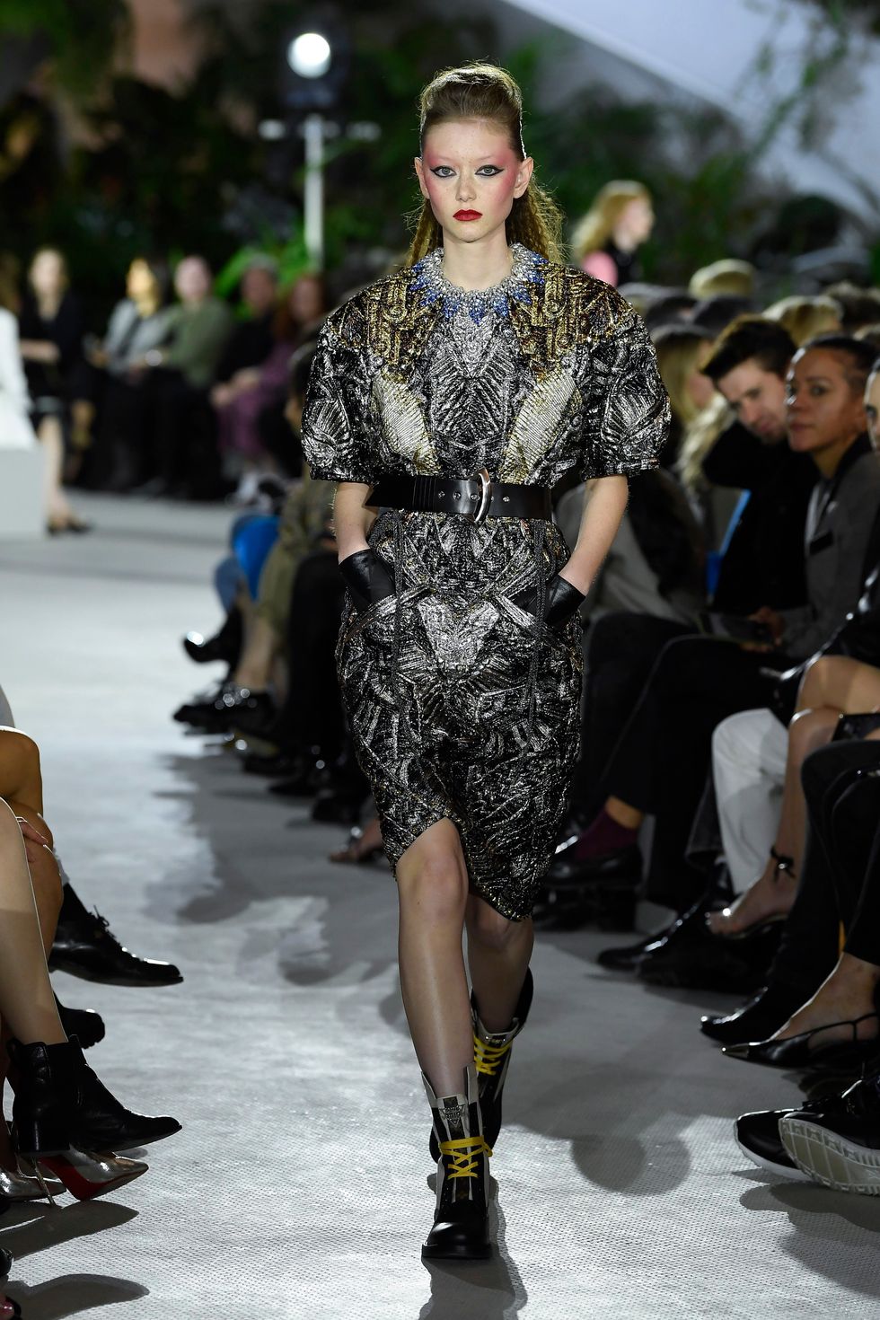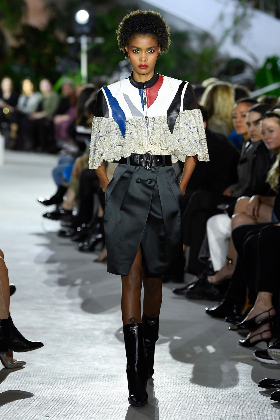 The show's front row — SOPHIE, Mark Ronson and Robyn, among others — was treated to an impressive collection that referenced multiple decades of fashion, from '80s bubble skirts to '50s rockabilly styles, crystalized bustiers and skyline embroideries.