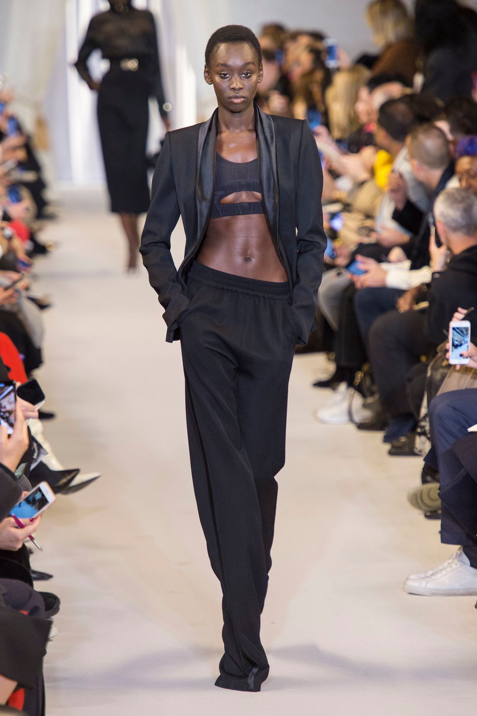 On February 11th, Helmut Lang held a show for the first time in a year and a half. Designers Mark Thomas and Thomas Cawson delivered a crisp, clean collection, a precise and sleek return to Lang's famed minimalism. It was lovely. And both the trousers and skirts — in everything from wool to leather to workwear twill — were low enough that you could spot an iliac crest.