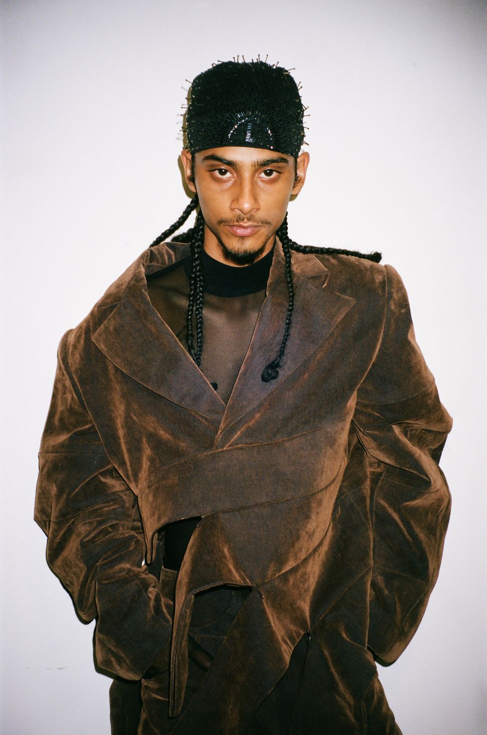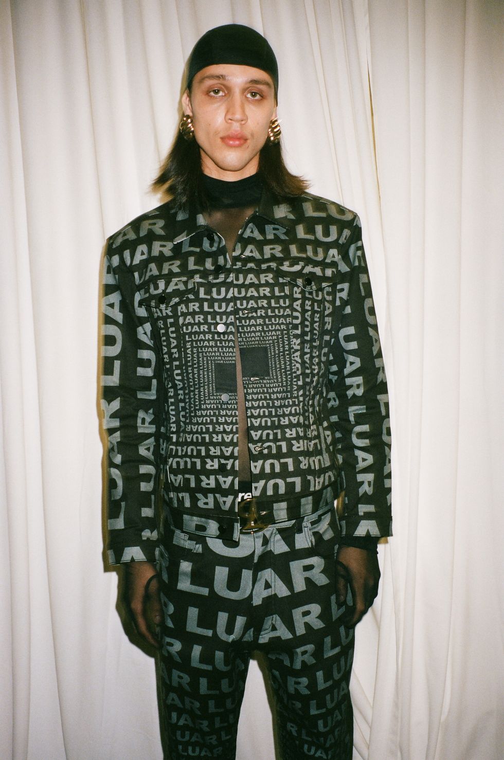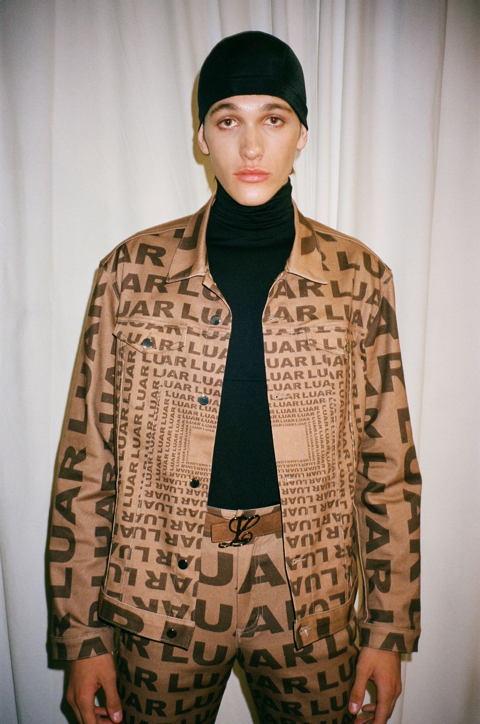 As perhaps could be expected from the brand’s wider trajectory, Luar’s Spring 2025 collection also expanded on accessible basics in various black, tan and camel colorways primed for casual, head-to-toe looks. Matching jacket-pant sets played into logo mania with optical illusions of Luar text. And then there was office siren-core suiting, like a tan blazer with sheer trimmings that Luar studio manager Keyla Exclusa described to PAPER as “cuckoo crazy in all the right places.”