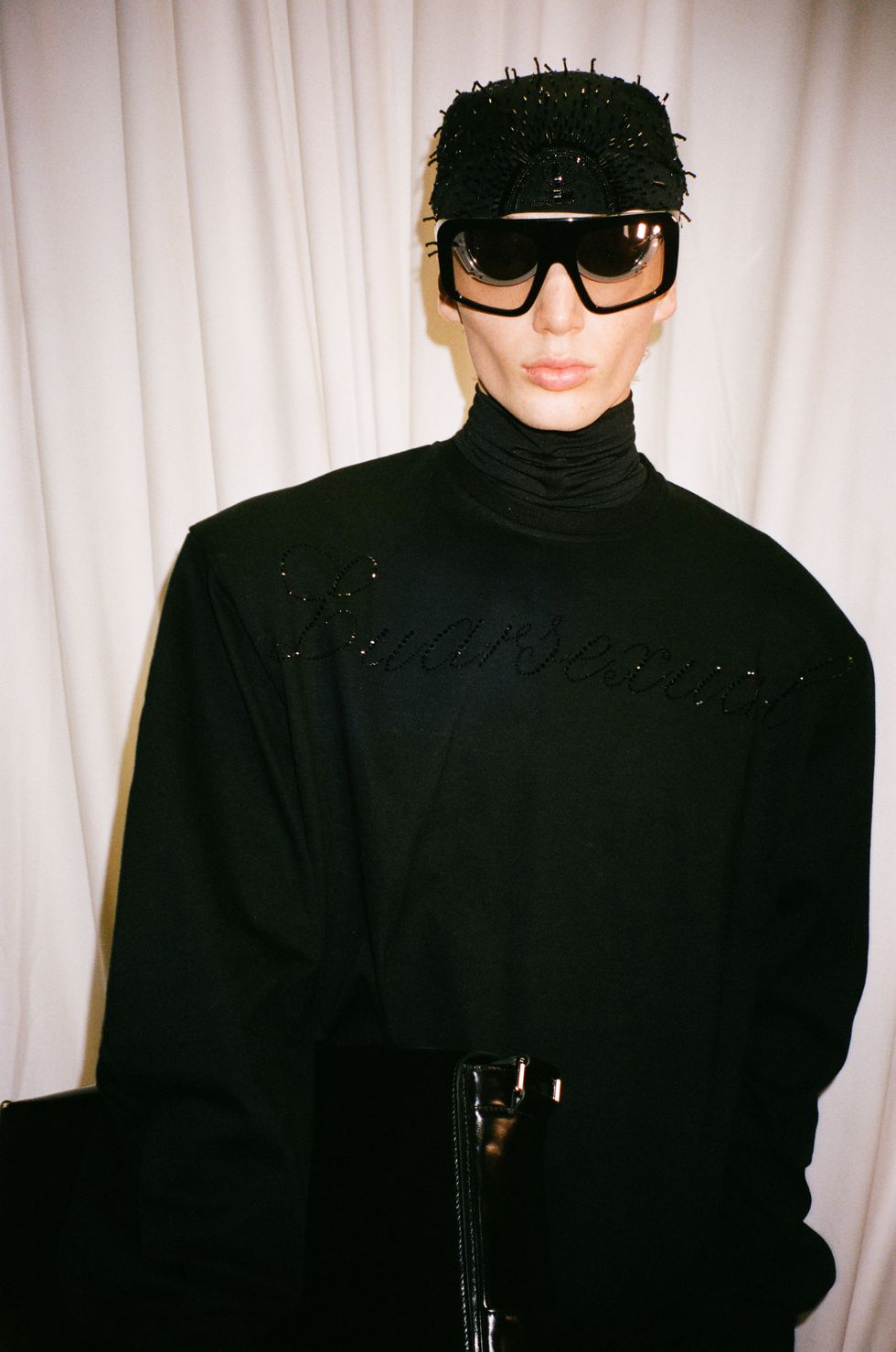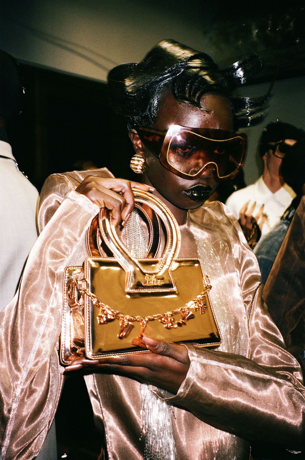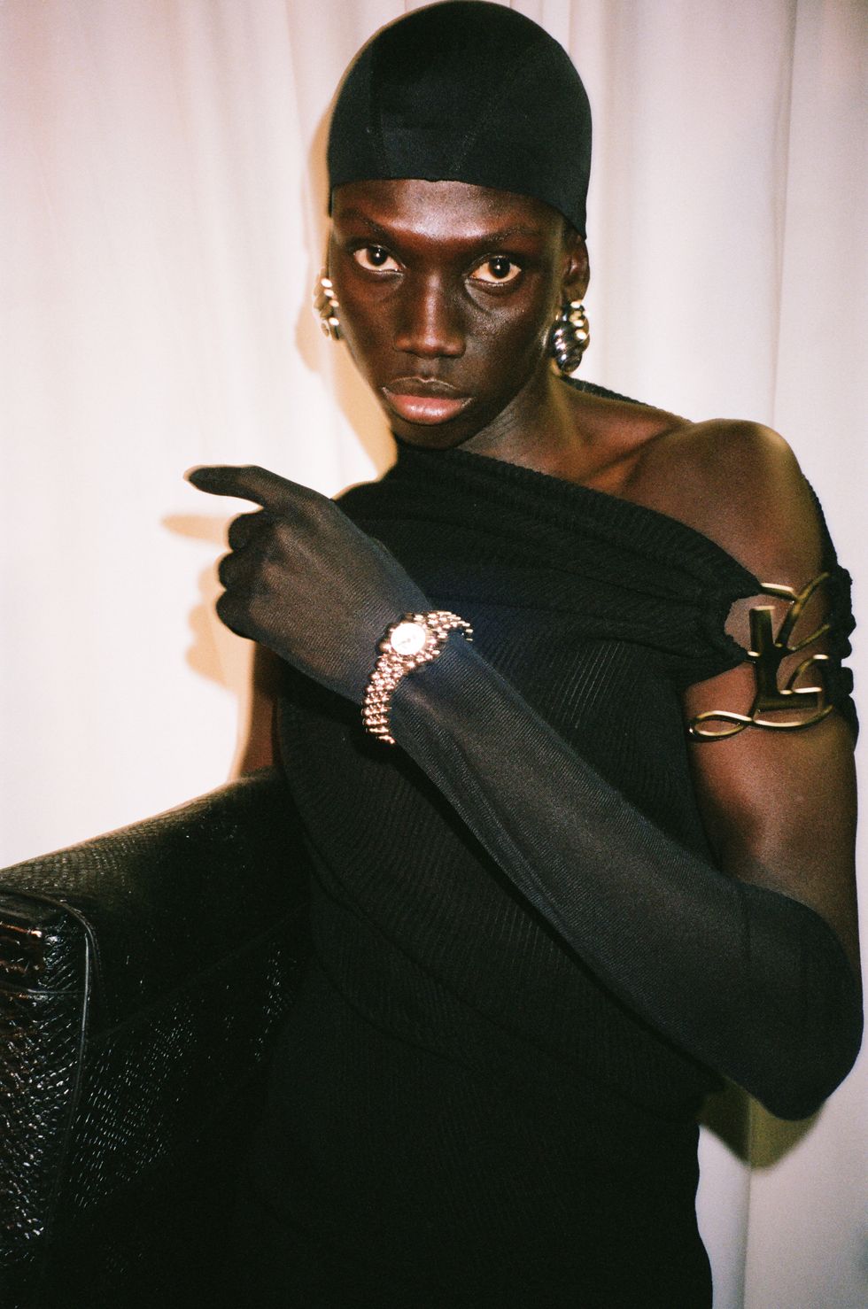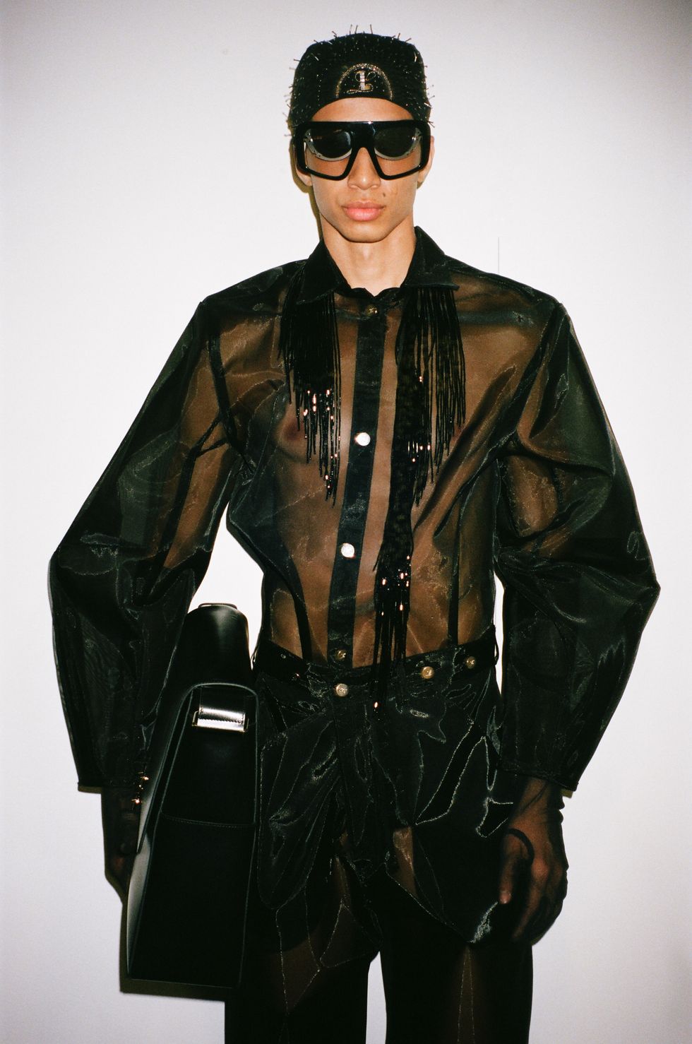Throughout 53 looks, models (and rapper Offset) took laps around the arena in Catholic-esque veils — including one stuffed with a bouquet of cash — and cocoon-like silhouettes, channeling Luar’s long standing concept of metamorphosis. Hooded floor-length gowns, ink-black python corsets and a bevy of Ana bags likewise recalled the brand’s previous collections.