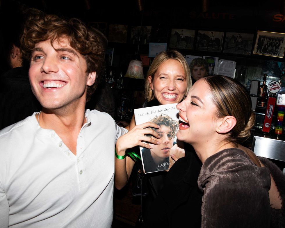 Gage took over the iconic Julius Bar and decked it out with cutouts of himself, stacks of his freshly released book, slutty phrases on posters, and packed the room with NYC’s hottest crowd. Previous co-stars, friends, and everyone in between, showed up to celebrate and support Lukas’s launch. Among those in attendance were Emma Roberts, Busy Phillips, Brittany Snow, Hunter Schafer, Camila Mendes, Madelyn Cline, Benito Skinner, Maude Apatow, Tefi Pessoa, Meredith Marks, Dylan Mulvaney, and Ivy Getty.