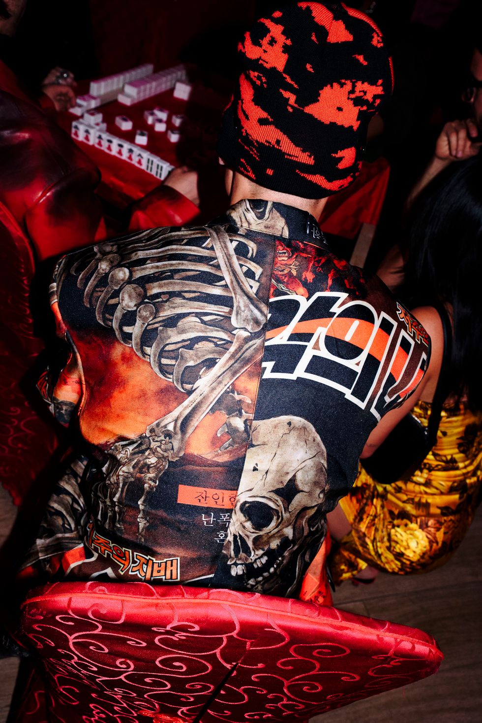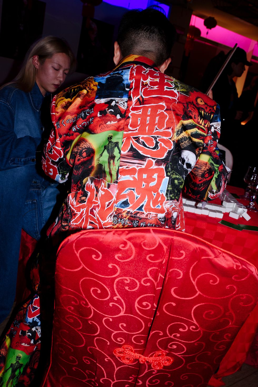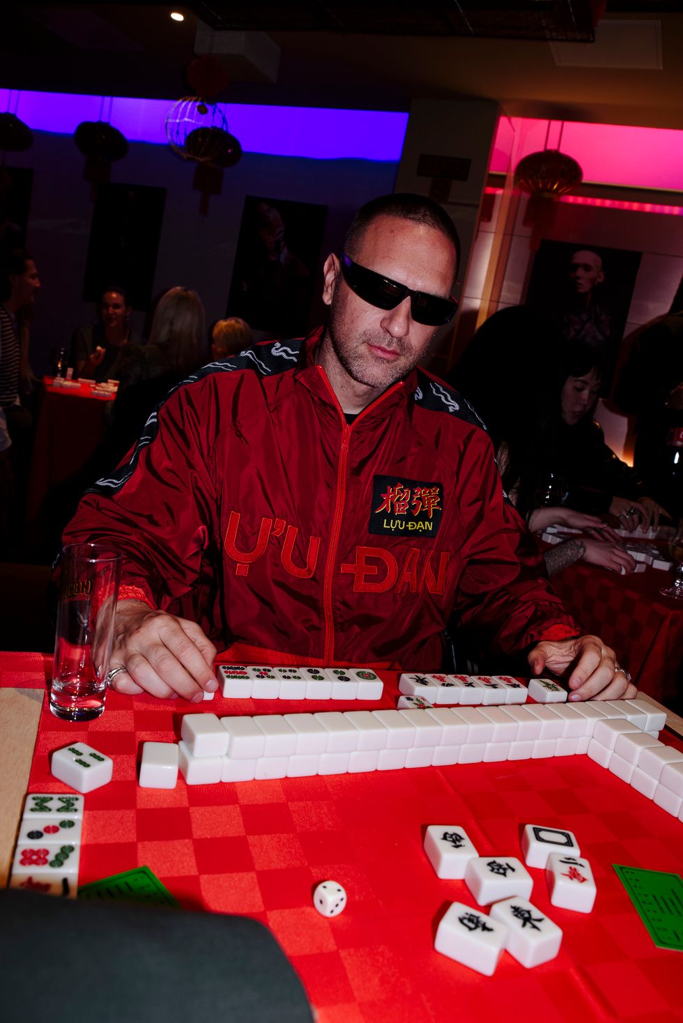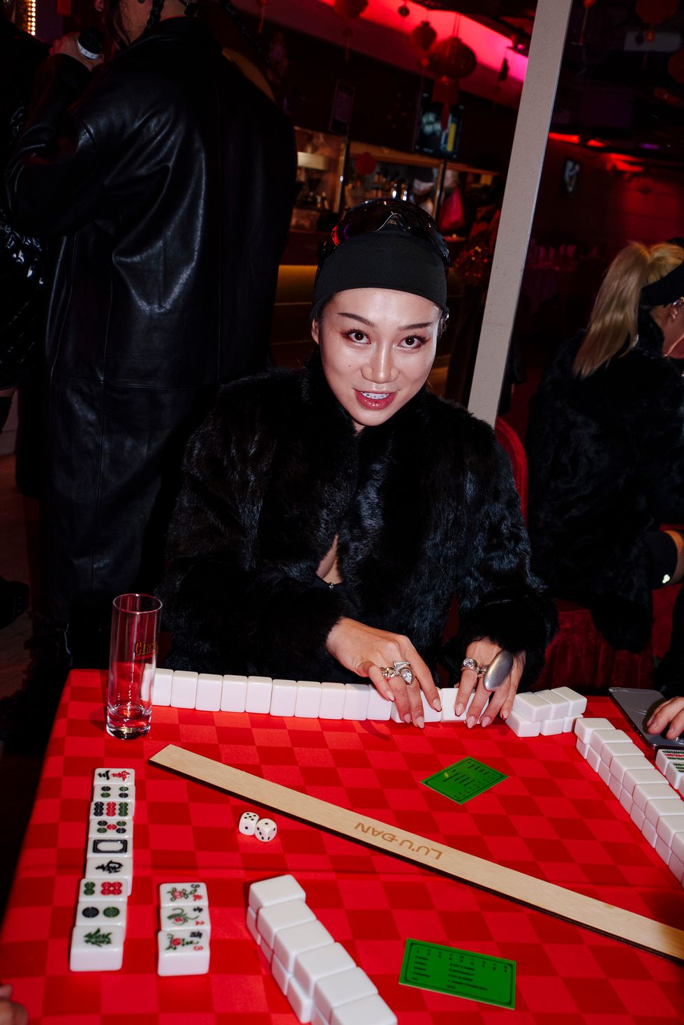 Guests mingled about the spacious red-lit restaurant, dressed in LU’U DAN looks from seasons past, and started by watching a tutorial from the designer himself on how to play the traditional game. Later on, they’d compete to win the brand’s signature Hell-Fire Moto L-D Jacket and writer Susie Lau would eventually take home the grand prize after several rounds of playing.