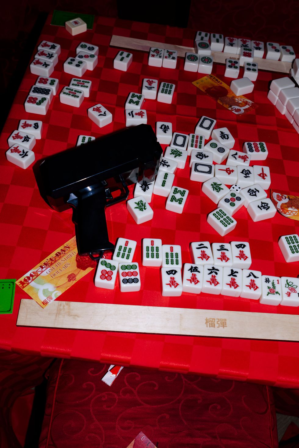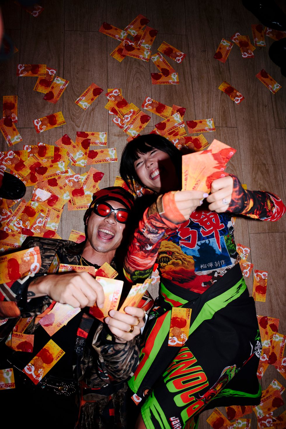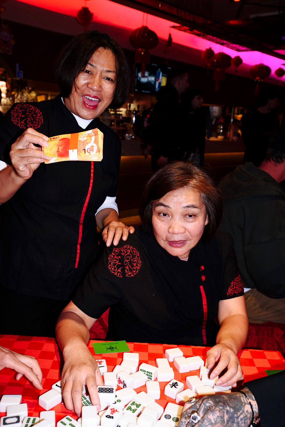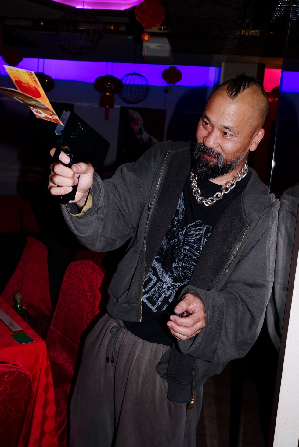 Guests mingled about the spacious red-lit restaurant, dressed in LU’U DAN looks from seasons past, and started by watching a tutorial from the designer himself on how to play the traditional game. Later on, they’d compete to win the brand’s signature Hell-Fire Moto L-D Jacket and writer Susie Lau would eventually take home the grand prize after several rounds of playing.
