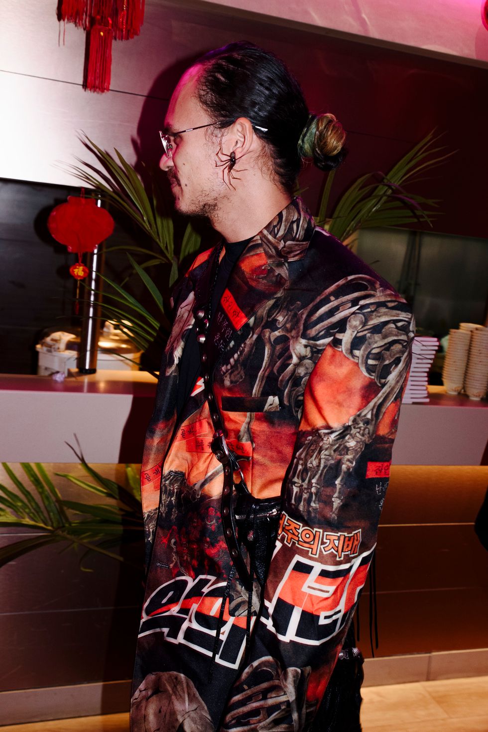 Other attendees included Paloma Elsesser, Kim Lee, Dr. Woo, Tommy Ton and Daniel Sannwald. Special VIPs wore LU’U DAN’s Spring 2025 collection, titled “MAYHEM,” which saw Hung La develop a story about “a disenfranchised drifter, a self-proclaimed loner,” who is “both liberated and imprisoned by his love for Asian gore films and the chaos of his own mind.” LU’U DAN’s clothes make everyone look cool, but especially the brand’s jackets and oversized jeans, one of which is purposefully distressed and washed to capture the “feeling of mischievous youth getting up to trouble.”
