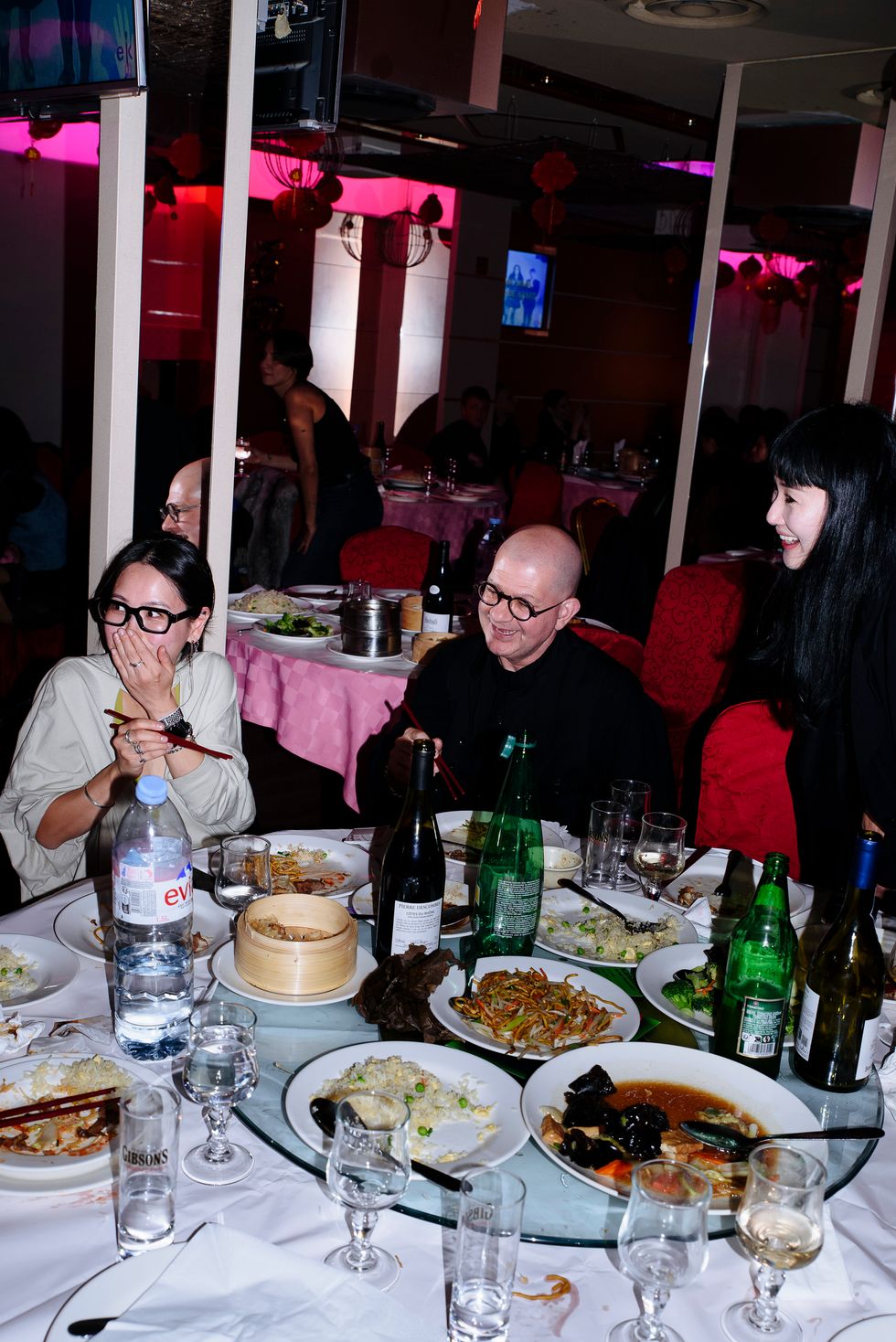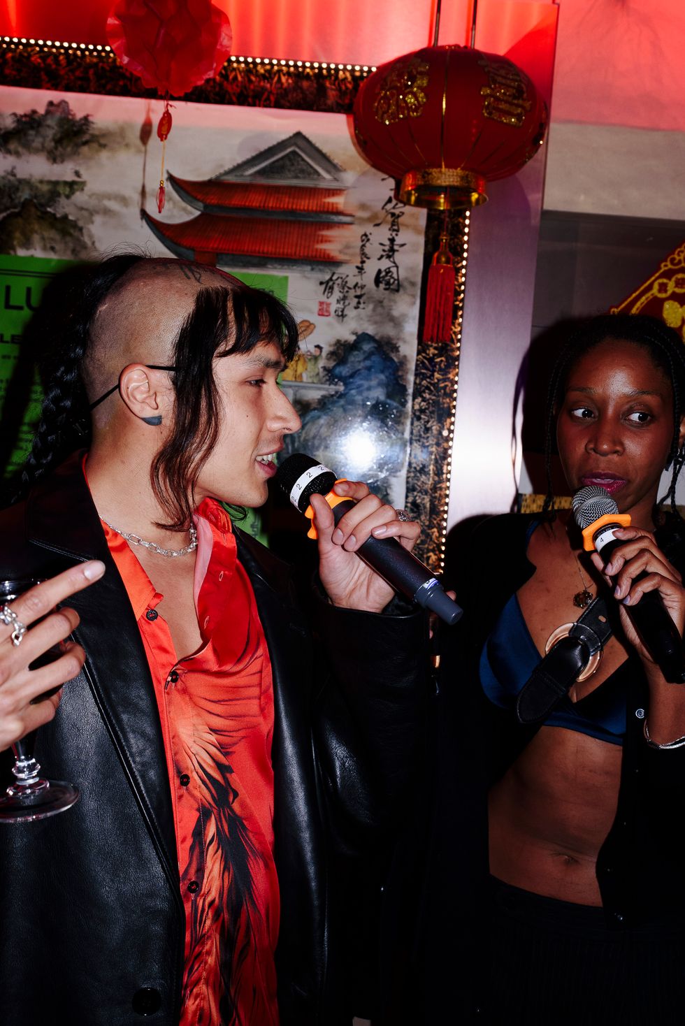 As the night progressed, dining tables filled up with dim sum that never seemed to end: dumplings, fried rice, noodles and much more, paired with red or white wine and beer. The soundtrack for LU’U DAN’s Hideout was provided by the guests themselves, singing karaoke live on-stage. One performance of “Fergalicious” was particularly memorable, and Blake Abbie’s version of “Toxic” was also worth noting. "There are certain moments in a brand's story where all the hard work and brand building allows me to let go and enjoy," Hung La told PAPER. "This was an example of the LU’U DAN community taking a life of its own."
