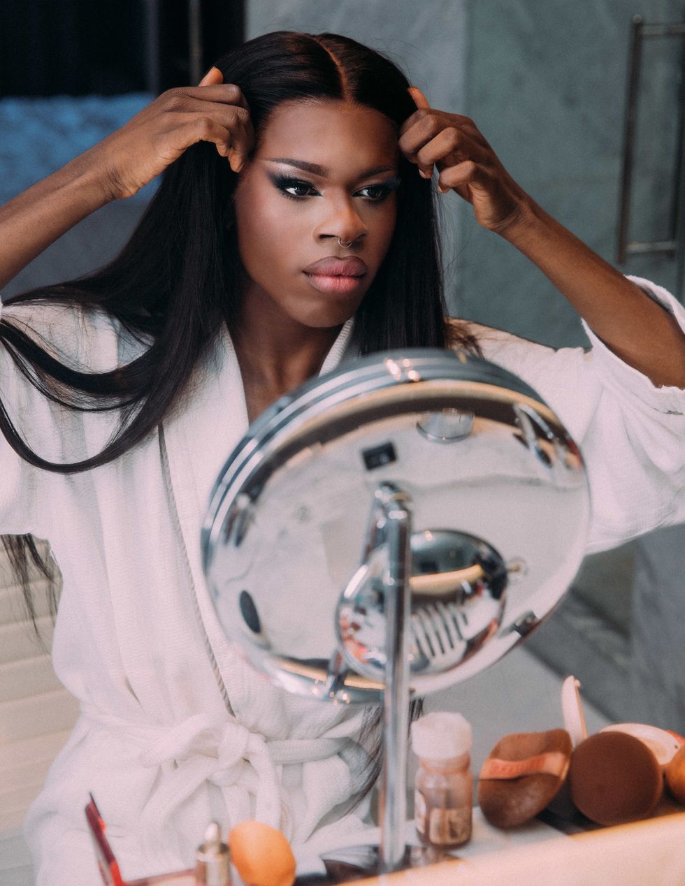 Below, Luxx Noir London takes PAPER exclusively behind the scenes of getting ready for her big night, from makeup and hair to completing her Versace gown with Christian Louboutin shoes and sparkling accessories by Rinaldy Yunardi and On Aura Tout Vu.