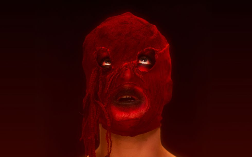 Later in our conversation they question the political utility of their mode of queer art-making; they are, after all, a gimp mask-wearing, filthy-mouthed drag entertainer and pop performer, and there’s a risk, if not a thrill, that comes with that approach. “Oh, yeah, I'm sure a gimp mask-wearing musician talking about anal sex is really going to help poor trans people,” they offer sarcastically before pausing to recalibrate. “But I guess there's an argument to be made for visibility and how we’re showing how amazing queer people are. Maybe there's something about showing a more vulnerable side... Maybe it’s a bit harder to hate someone like me when I spend most of my music talking about how much I hate myself.”
