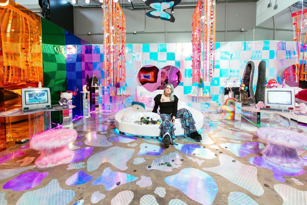 Multimedia artist, Marina Fini's installation was inspired by Radiohead's "Creep." The neon colored, iMac laced, 90s-style bedroom is Fini's interpretation of the lyrics: But I'm a creep/I'm a weirdo/What the hell am I doing here?/I don't belong here