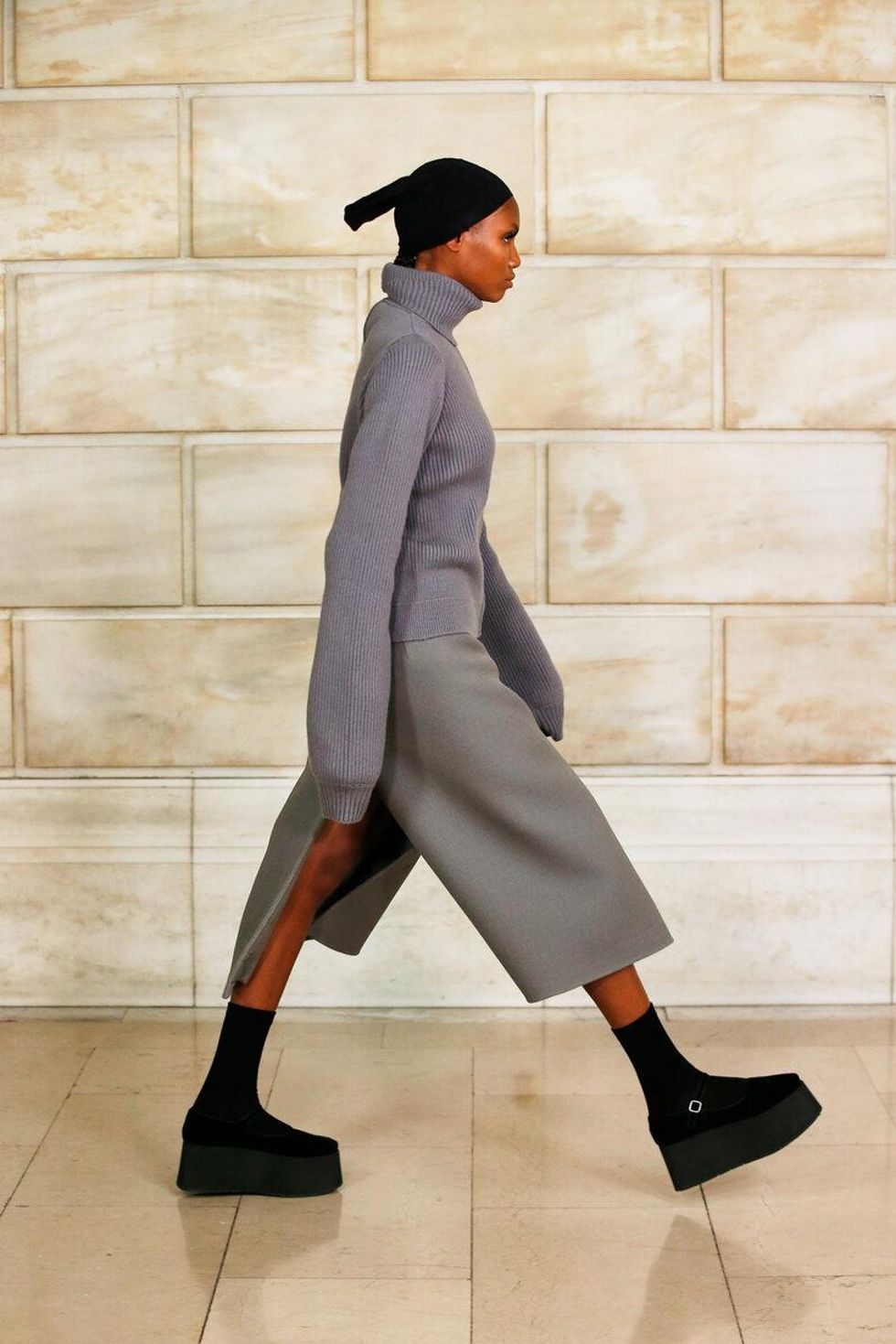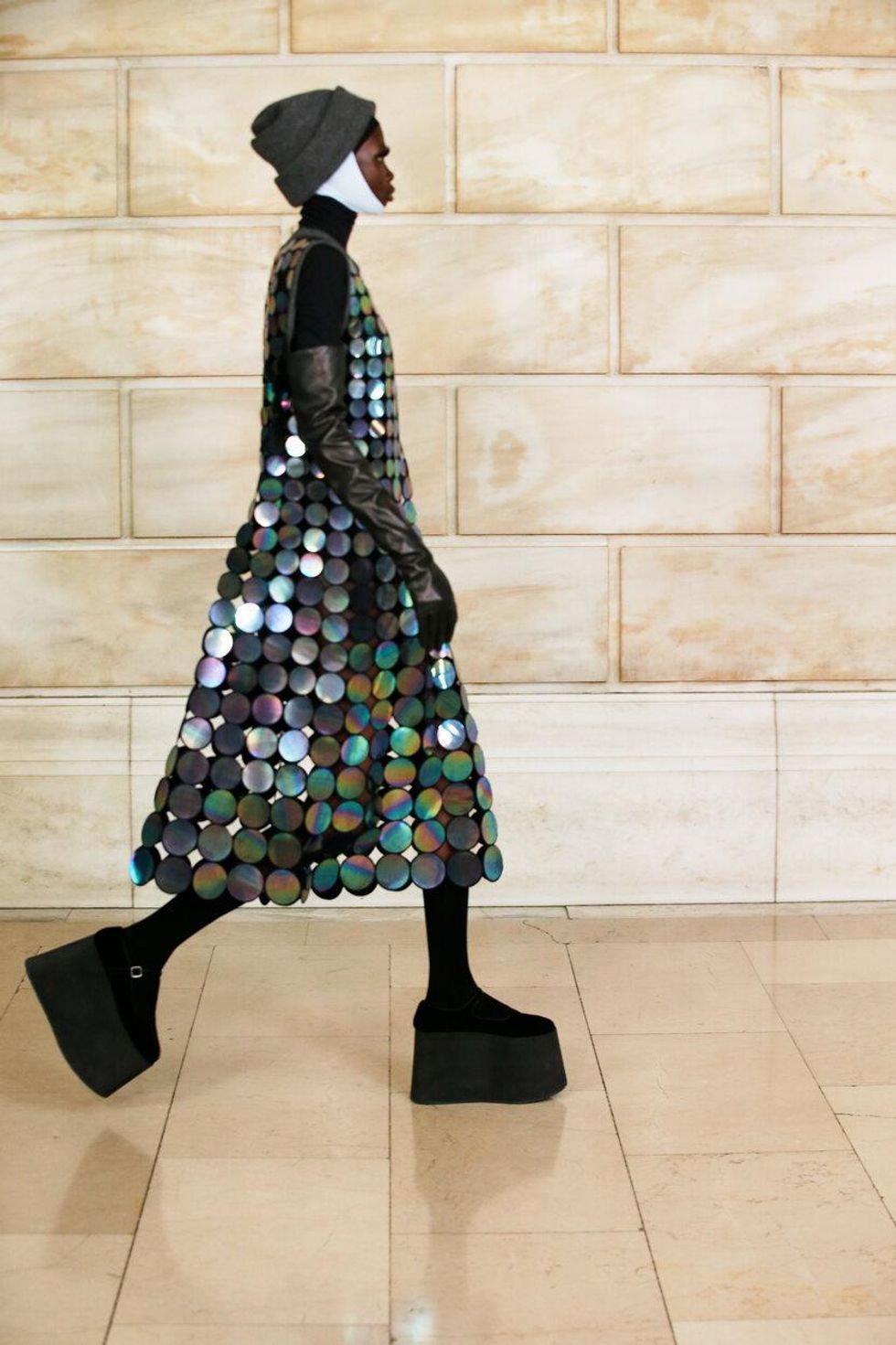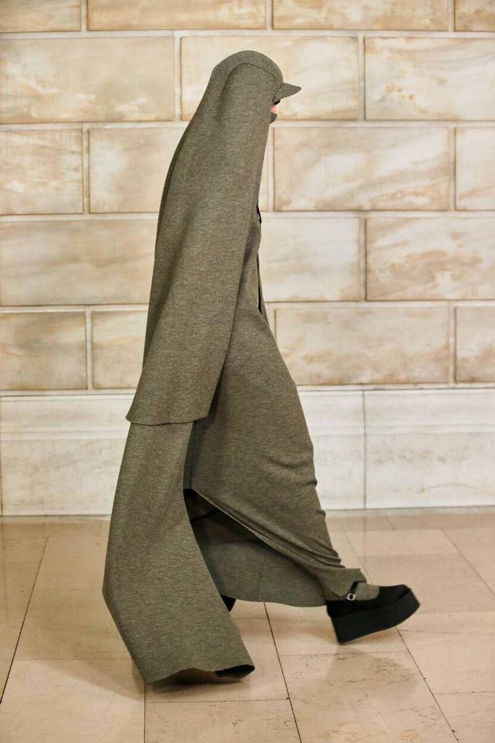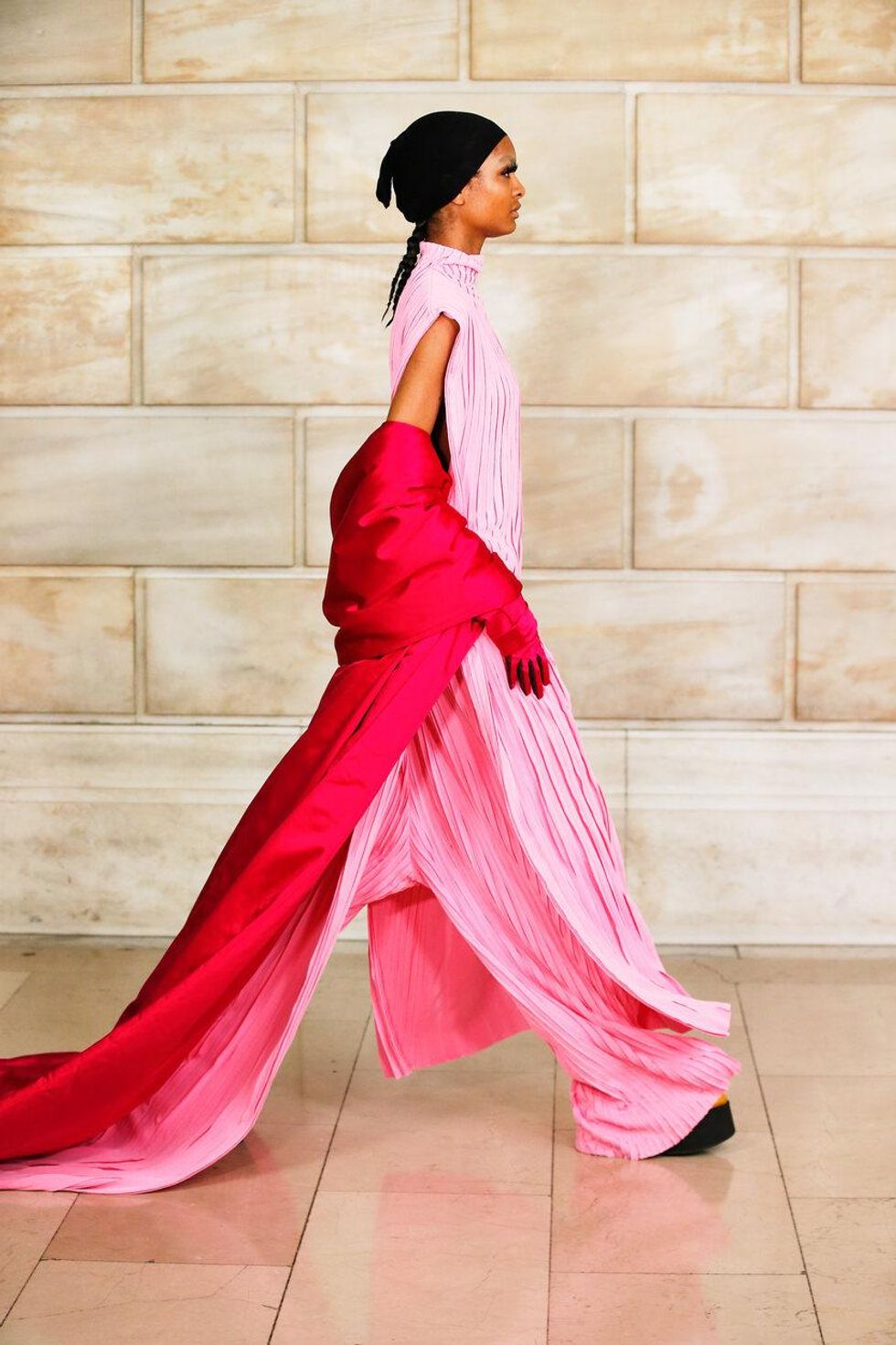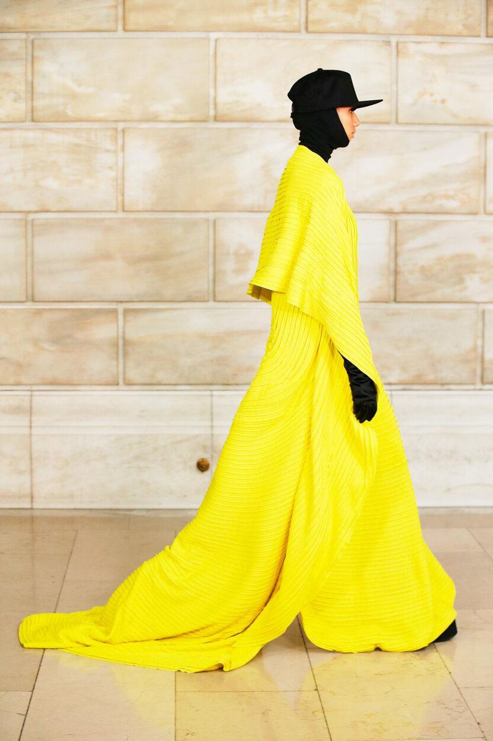 There were 70 looks in total, with the official runway photographs taken from the side of the models rather than the front, perhaps to showcase the depth and unique proportions of the clothes, which featured long trains, sweeping coats, roomy puffers, giant platforms, colorful paillettes and graphic logos. See the full collection, below.