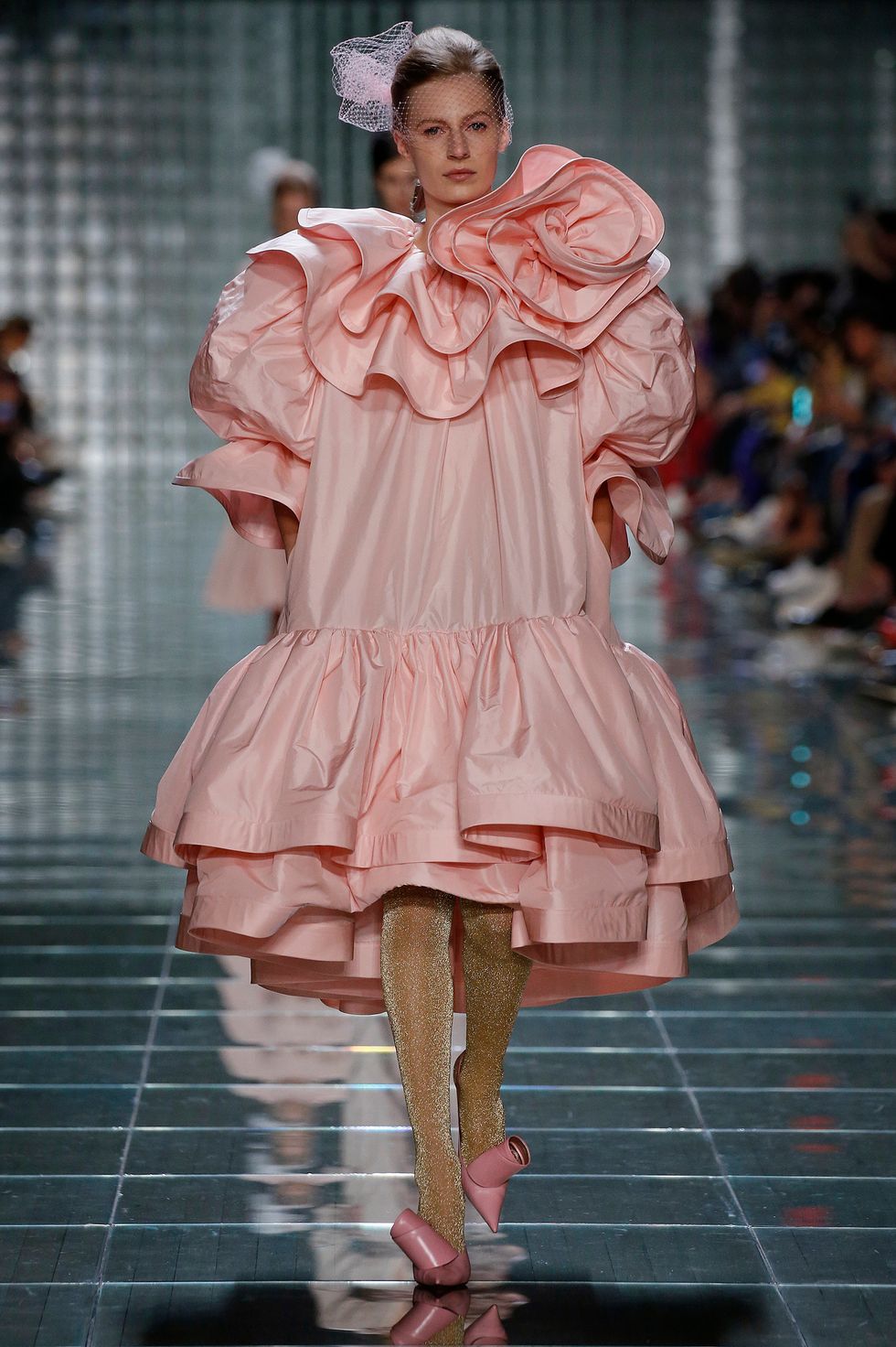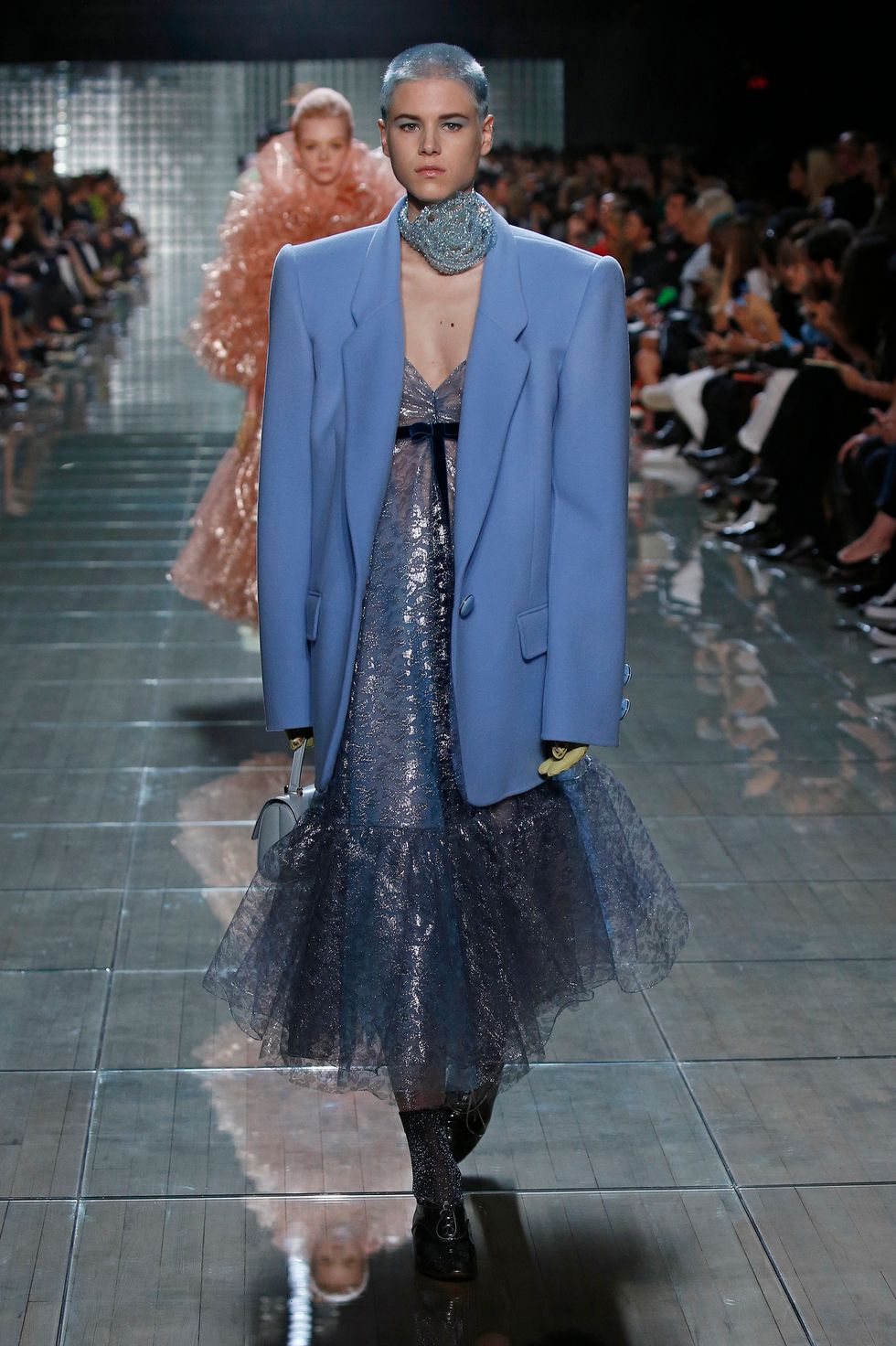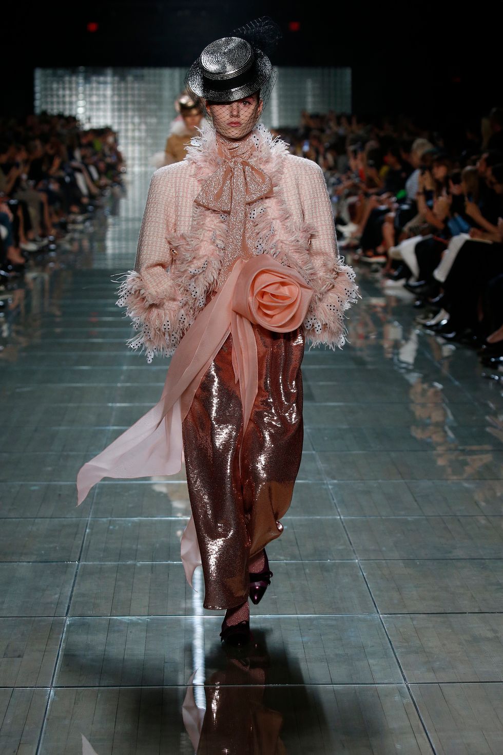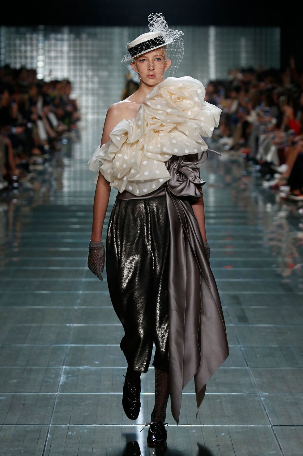 Marc Jacobs is known to change the look of his collection drastically, touting red, white, and blue prep-school style one season and scrapping it in favor of bewitching gothic glamour the next. Last night at his spring 2019 show, the designer uncharacteristically presented an iteration of his preceding collection by revisiting voluminous silhouettes, dramatic silk ruffles and rosettes, and boxy 80s tailoring. It seems after decades of sharp turns in aesthetic direction, Jacobs is shifting focus to gradual evolution from one collection to the next.