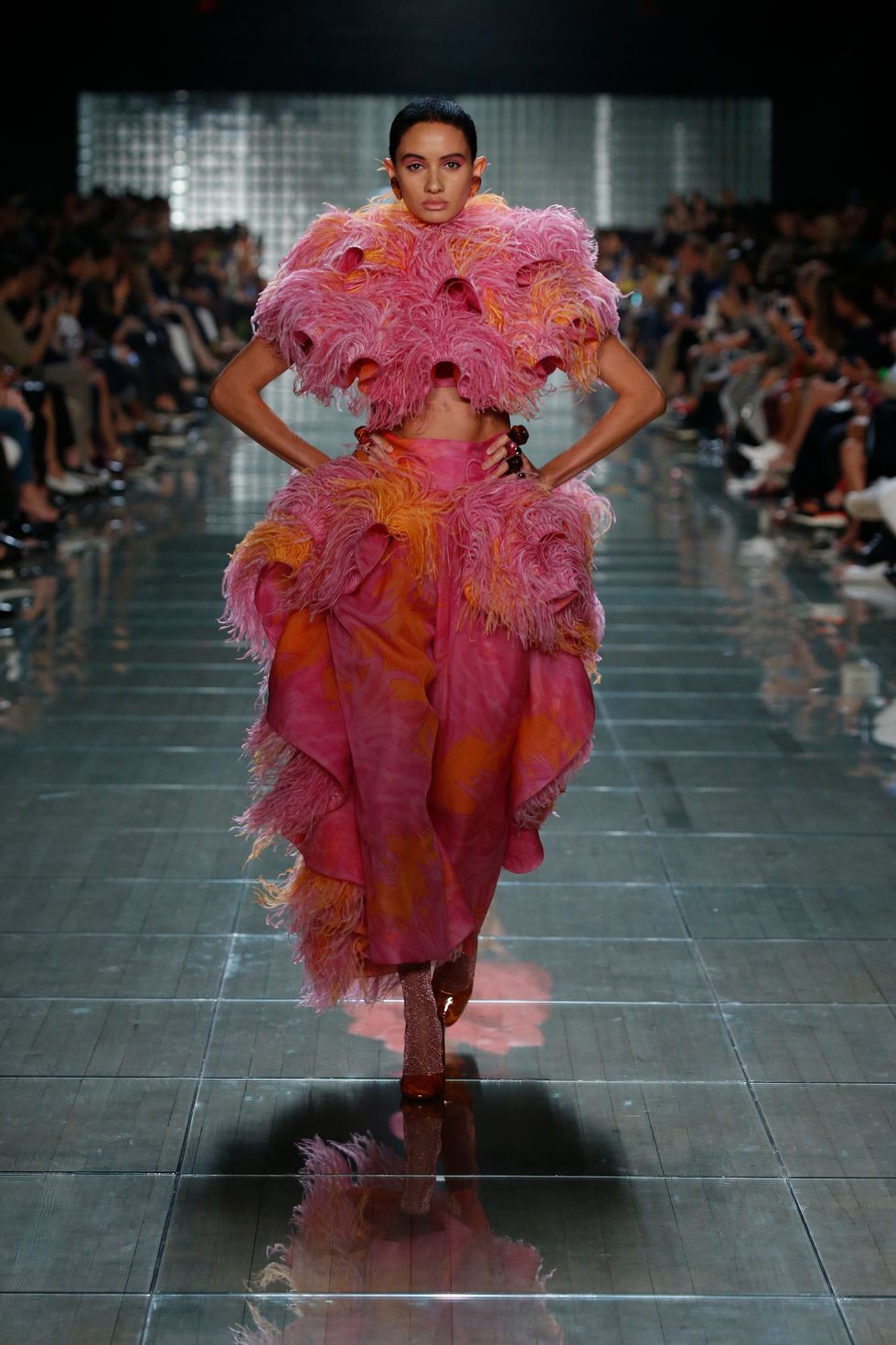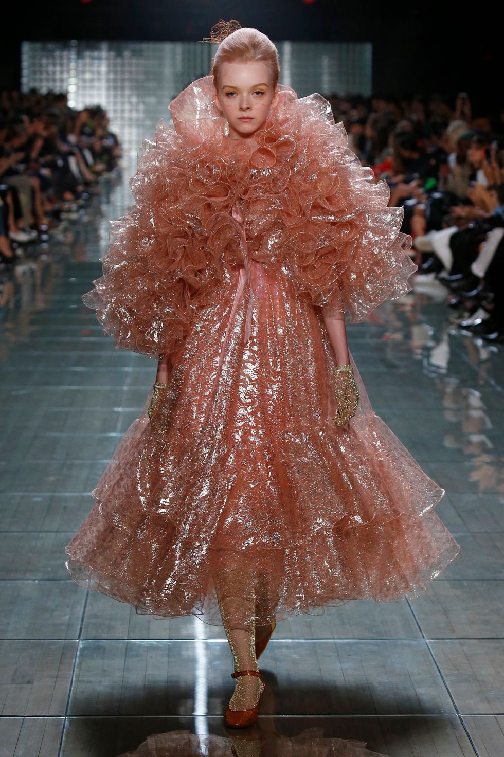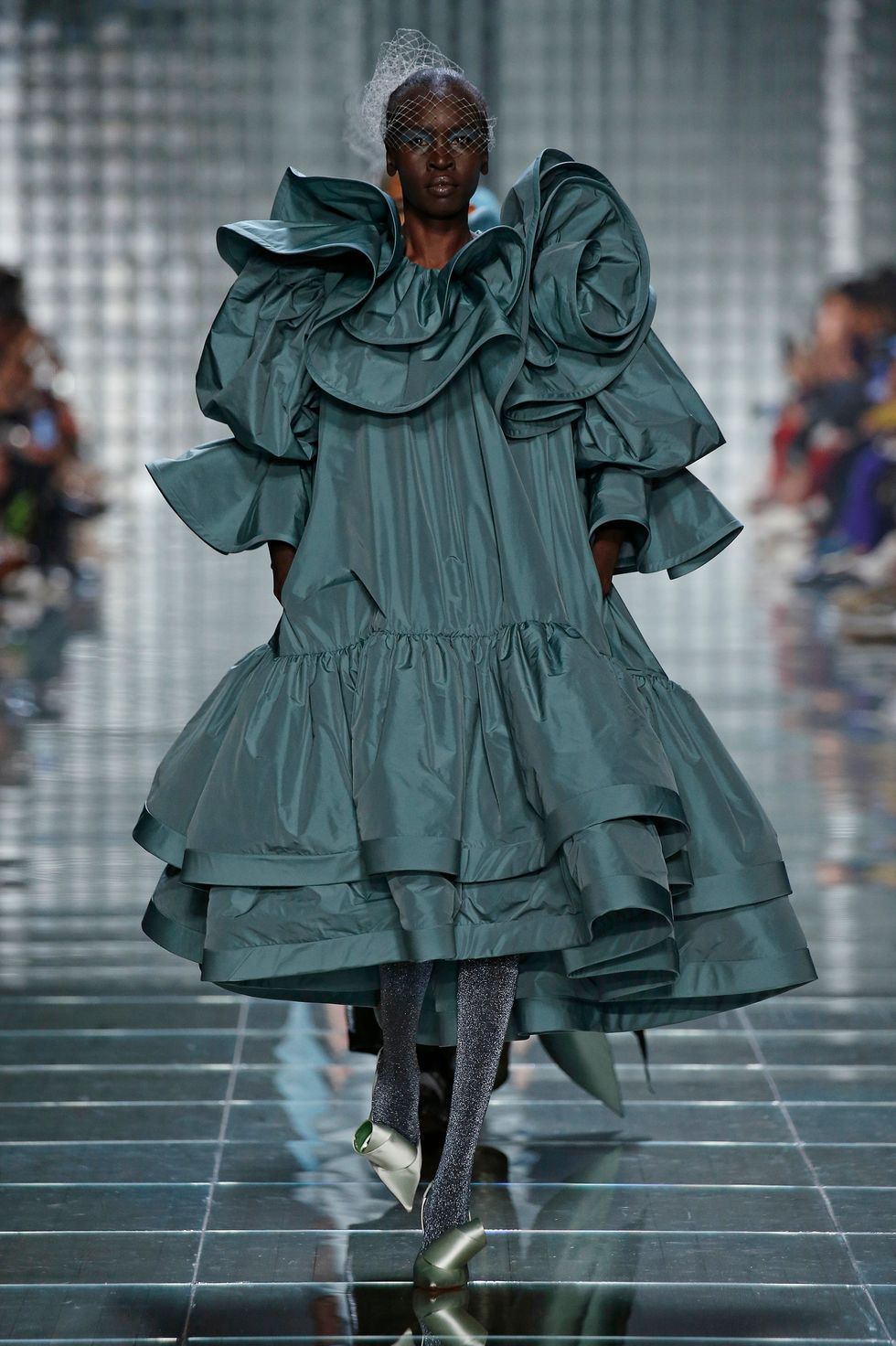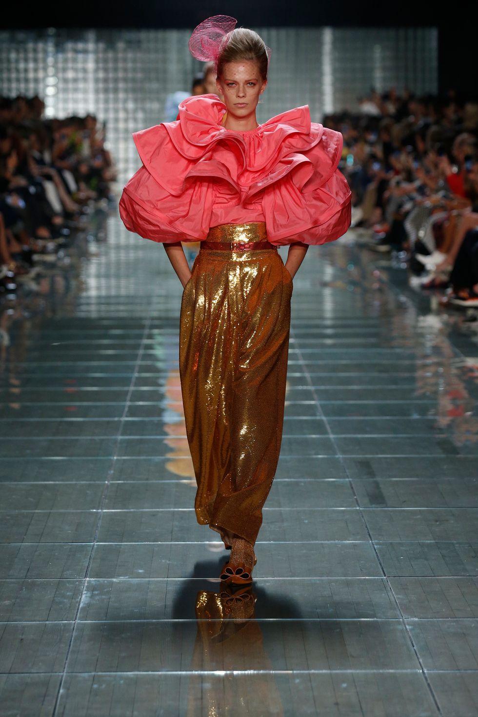 Marc Jacobs is known to change the look of his collection drastically, touting red, white, and blue prep-school style one season and scrapping it in favor of bewitching gothic glamour the next. Last night at his spring 2019 show, the designer uncharacteristically presented an iteration of his preceding collection by revisiting voluminous silhouettes, dramatic silk ruffles and rosettes, and boxy 80s tailoring. It seems after decades of sharp turns in aesthetic direction, Jacobs is shifting focus to gradual evolution from one collection to the next.