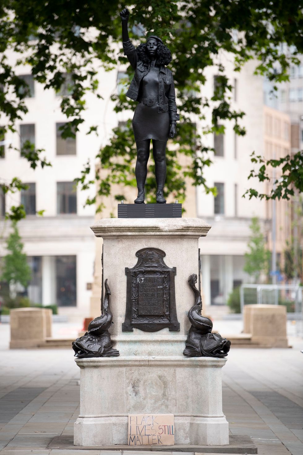 Quinn goes on to say that the unsanctioned work isn't intended as a permanent solution, but to keep the conversation about racism going, "it's a spark which we hope will help to bring continued attention to this vital and pressing issue. We want to keep highlighting the unacceptable problem of institutionalized and systemic racism that everyone has a duty to face up to. This sculpture had to happen in the public realm now: this is not a new issue, but it feels like there's been a global tipping point. It's time for direct action now."