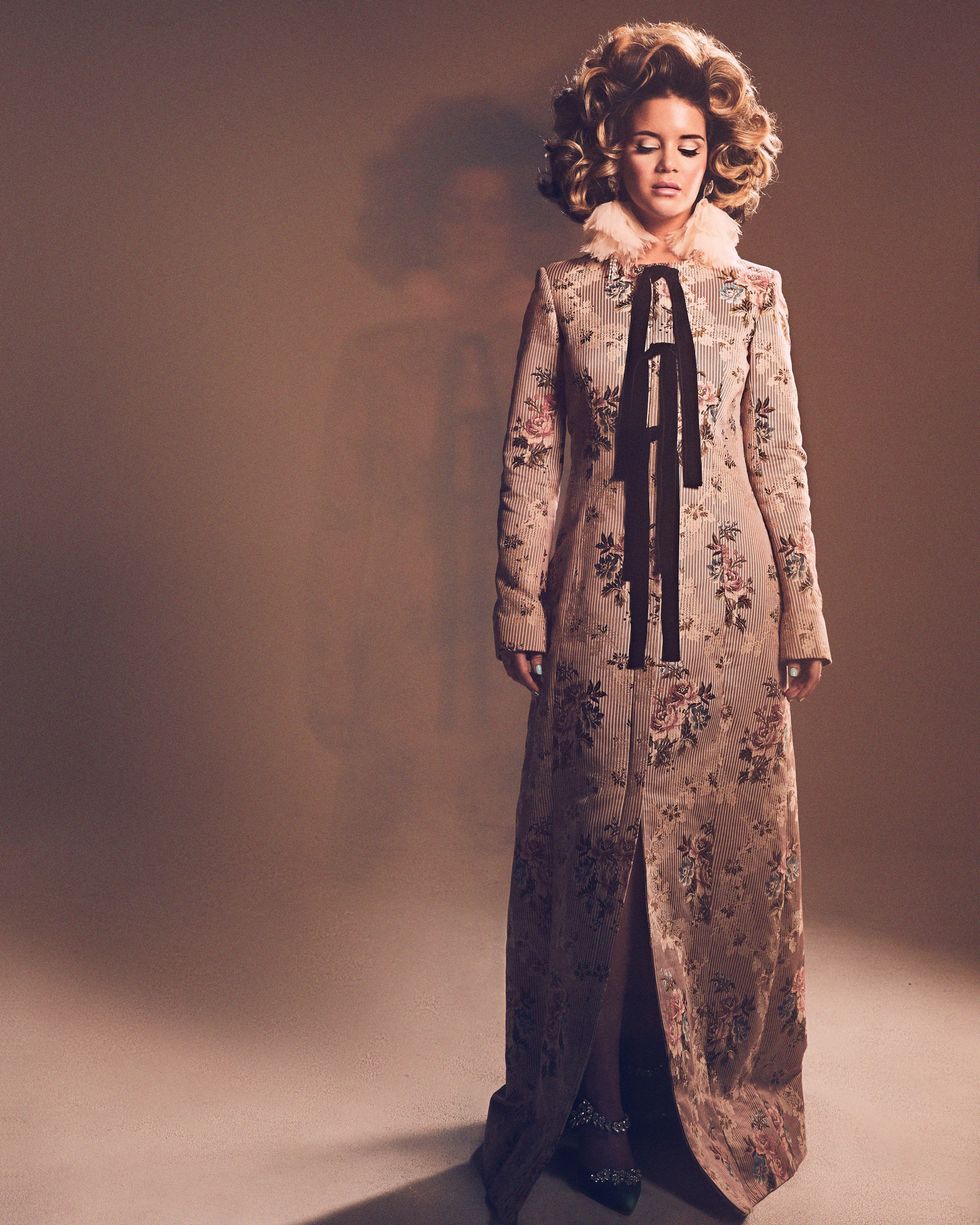 Coat: Brock Collection, Shoes: Manolo Blahnik, Earrings: Victoria Hayes