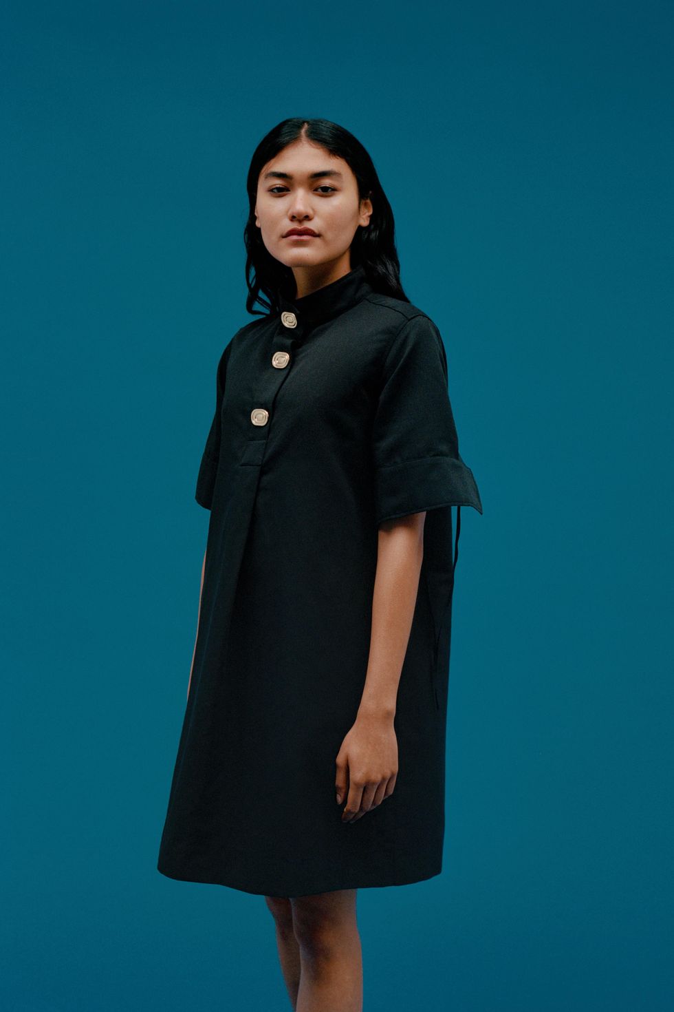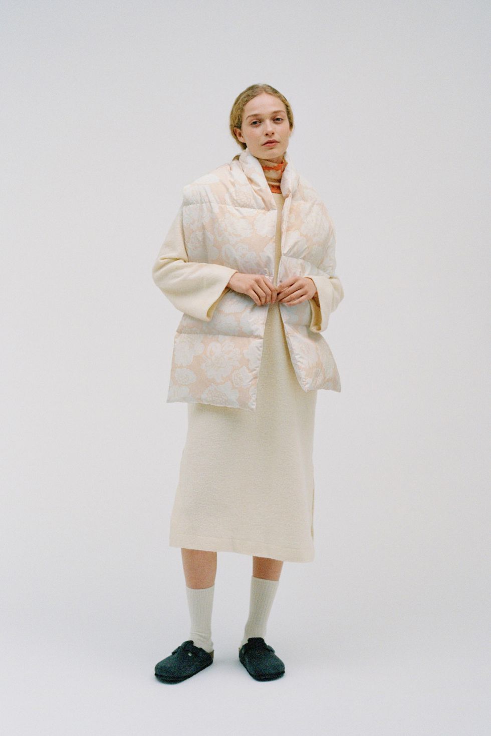 Timeless dresses in a neutral, cool color palette are “designed to be passed down from one generation to the next,” according to Bay, and have been interpreted by Søndergaard into an art photography series in the New Folk — New Traditions exhibition in Copenhagen.