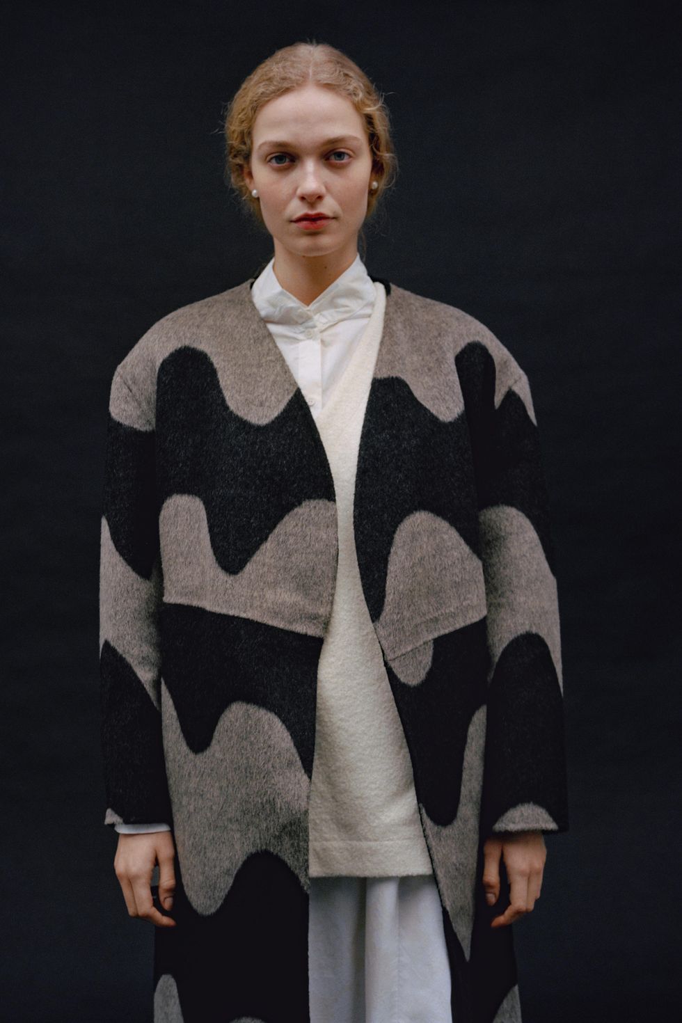 The Finnish design house’s Fall 2022 collection plays with the traditions and vocabulary of the brand, following a contemporary, minimalistic code with geometric prints, new silhouettes, and an abundance of textures and layers.
