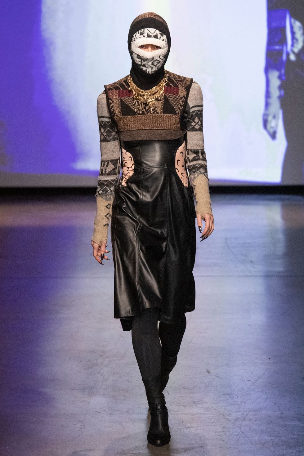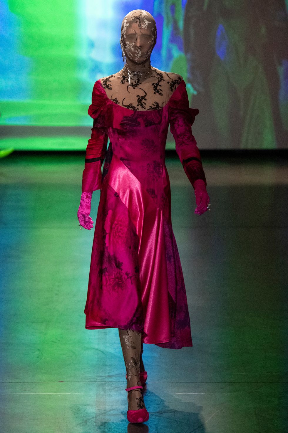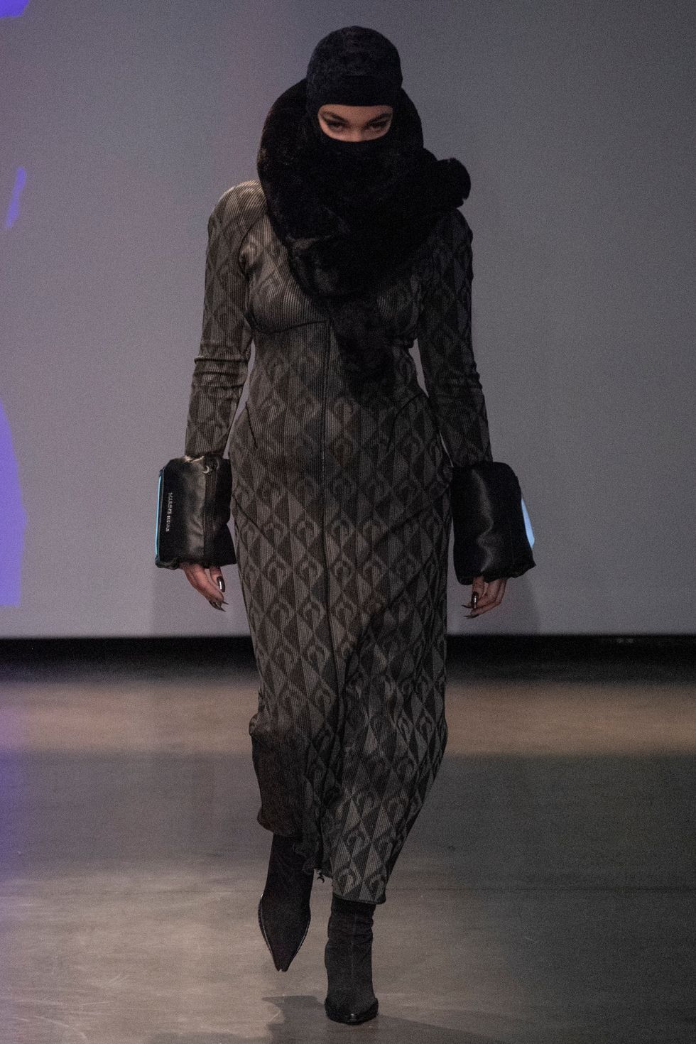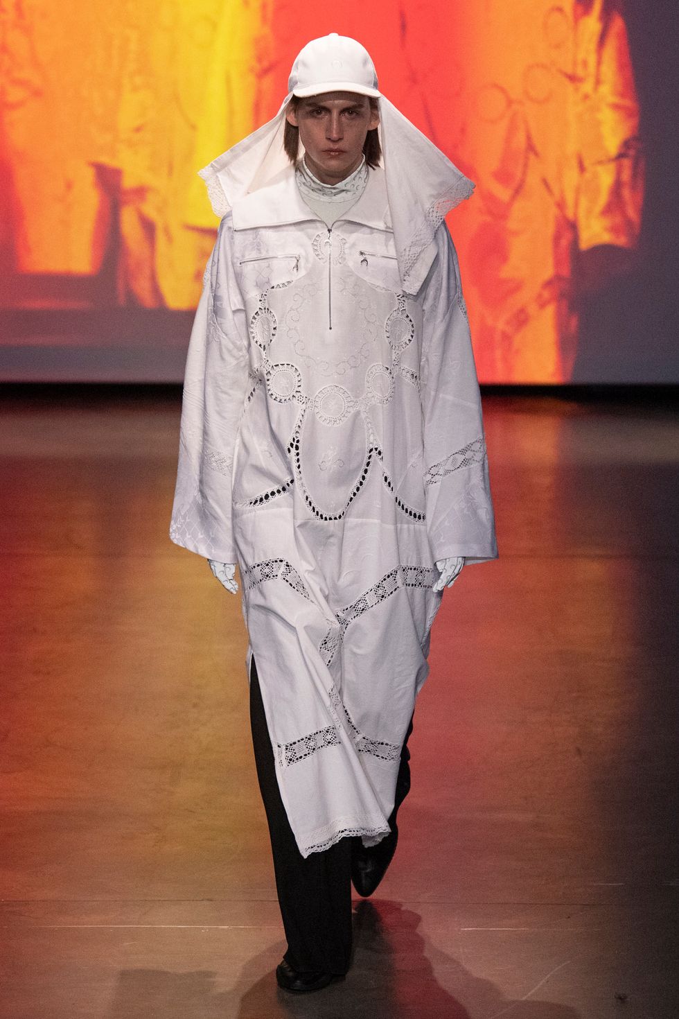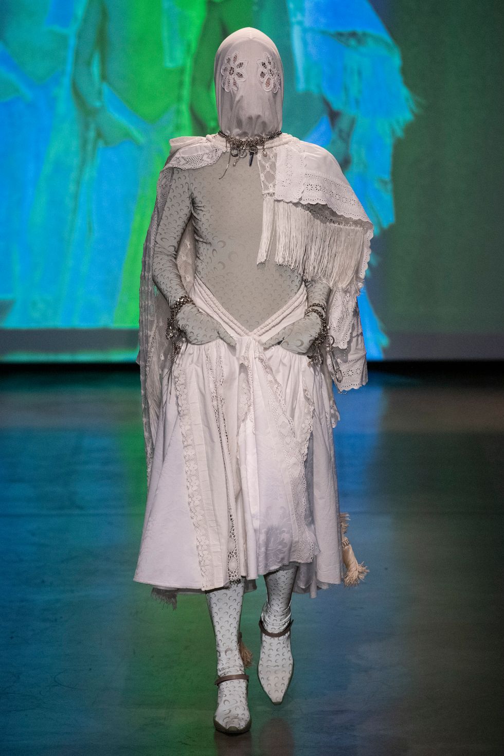 For those who want even more protection, Serre offered up bedazzled balaclavas and masks featuring lace embroidery that conceal the entire face. See, below, for more of the designer's Fall/Winter 2020 collection.