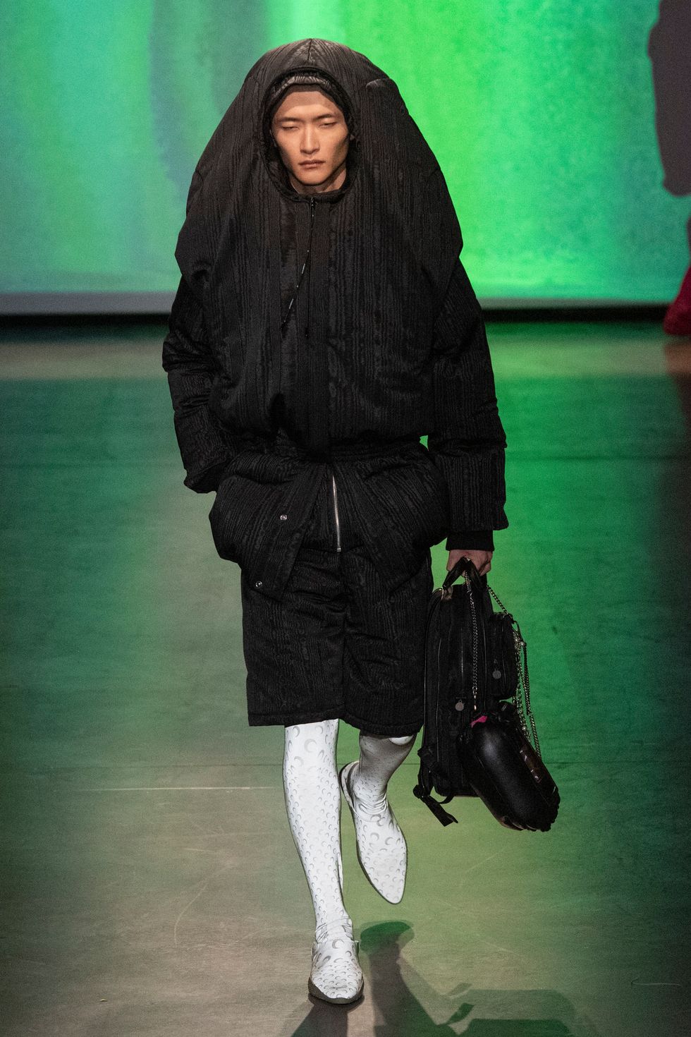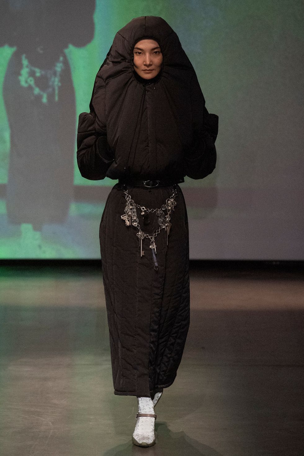 True to Serre's sustainable design approach, she incorporated various upcycled materials in this collection like bedsheets, carpets and tablecloths to create her compelling futurustic outfits. (About 50% of the collection consisted of upcycled fabrics.)