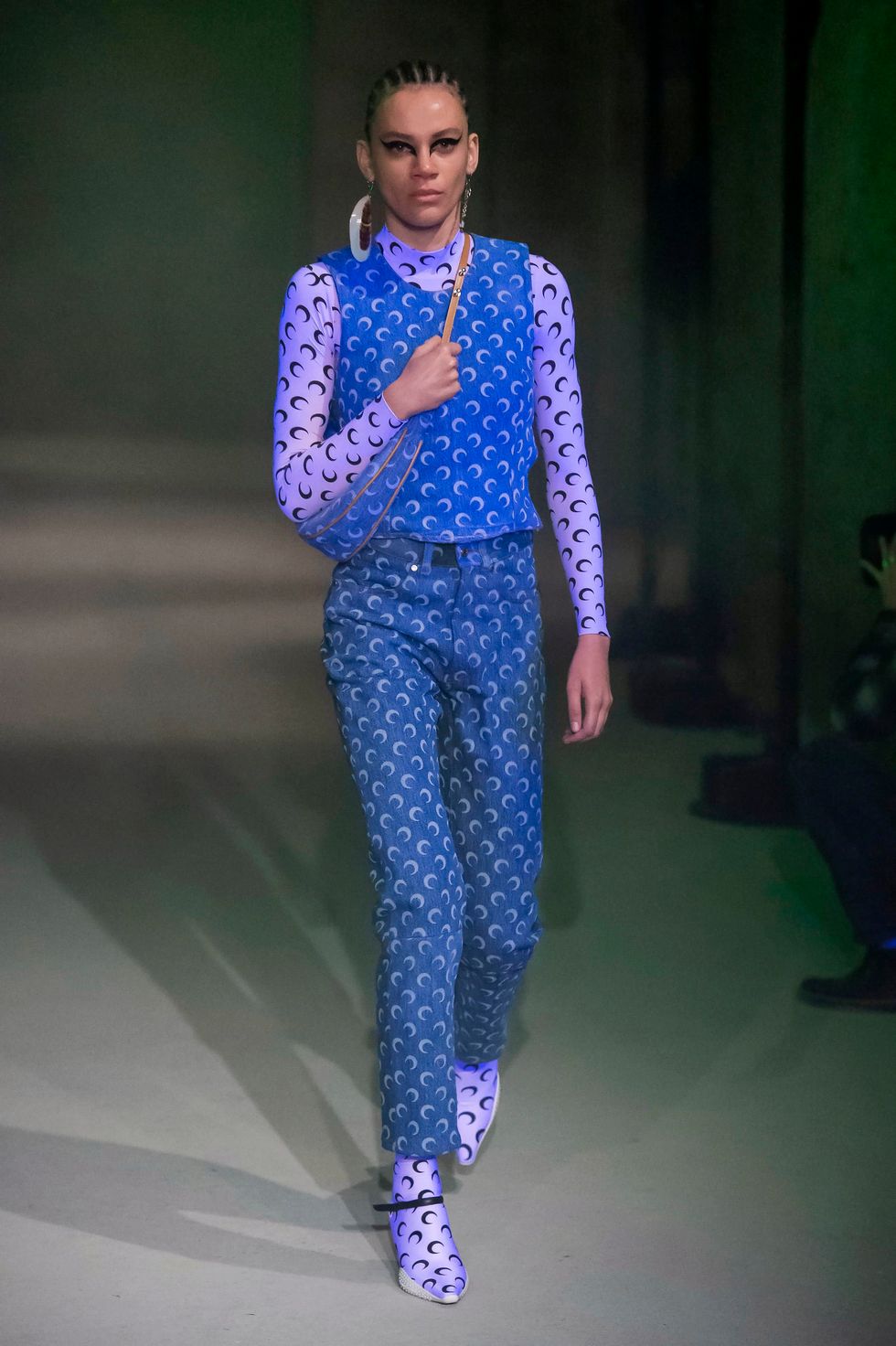 Months after launching her label in 2017, Serre won the LVMH Prize. Since then, she's forever been associated with the cool crescent moon motif she places on everything from tops to bags and scarfs. For fall 2019, there were body bodysuits, leggings, balaclavas and dresses with the iconic print.