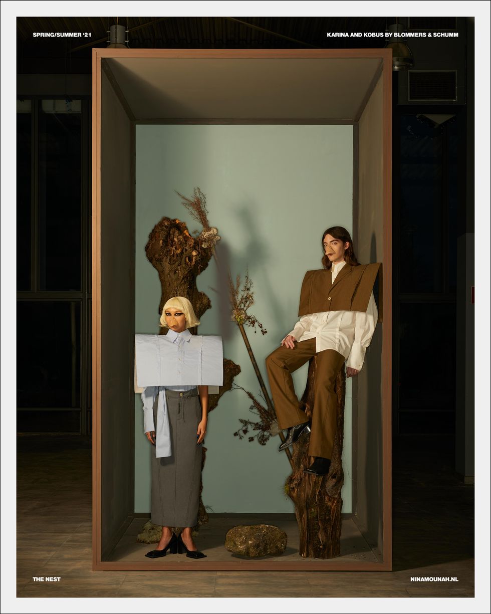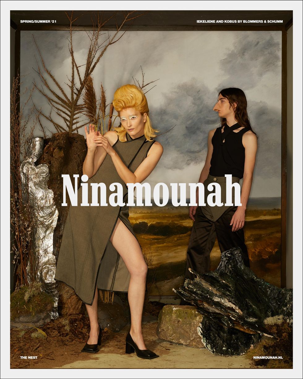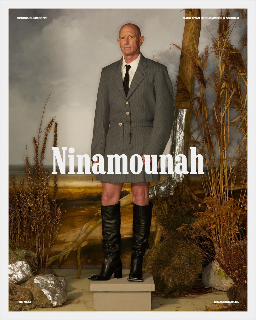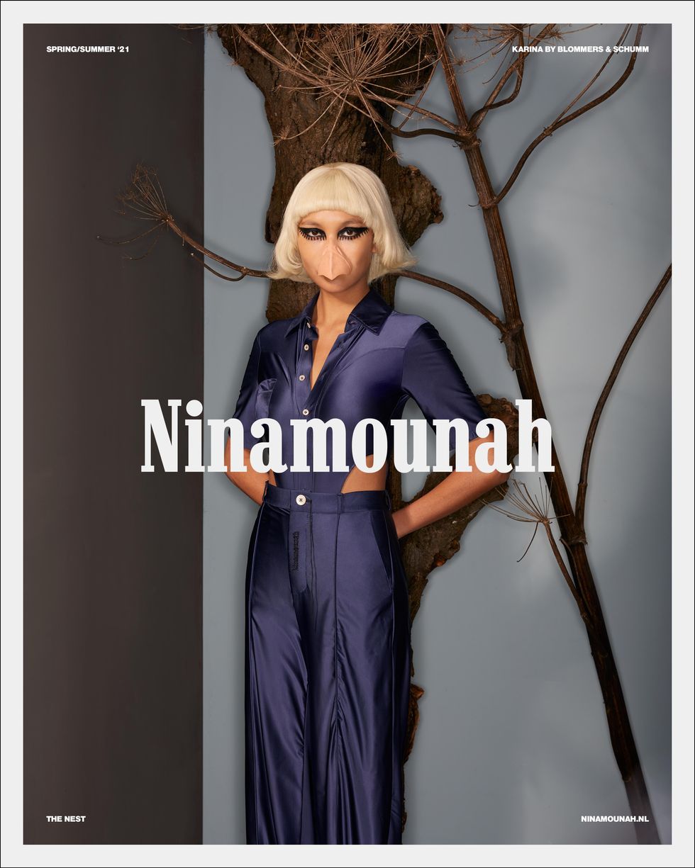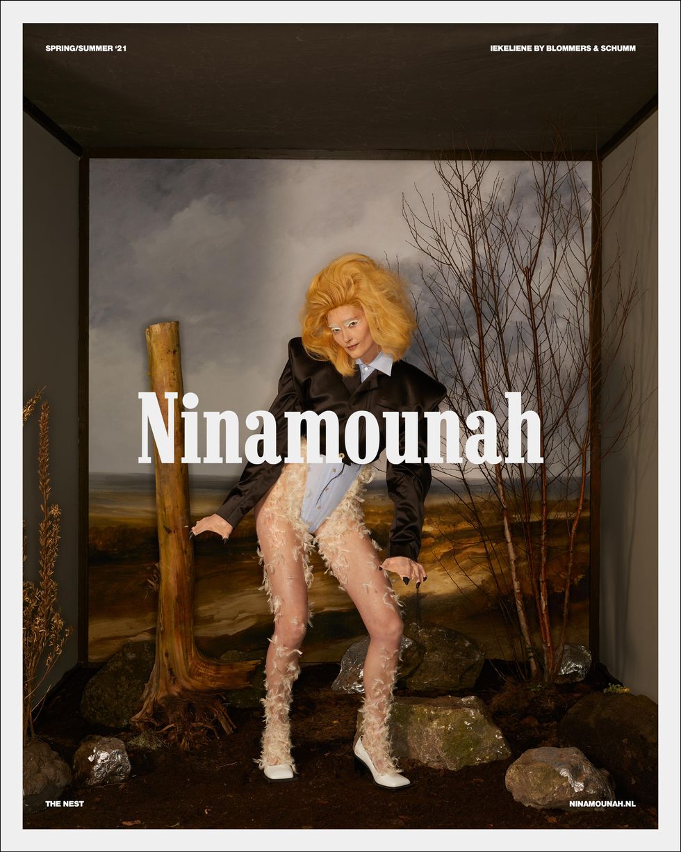 Fittingly, Bryan has now landed a fashion campaign, lending his legs to Amsterdam's Ninamounah, who transformed him into stylish taxidermy for their Spring 2021 collection, Nest. Helmed by Designer Ninamounah Langestraat and Brand Director Robin Burggraaf, Ninamounah wanted to produce imagery that reflected an era of extreme isolation — when everything came to a stop and we were forced to nurture our own environments from within isolation.