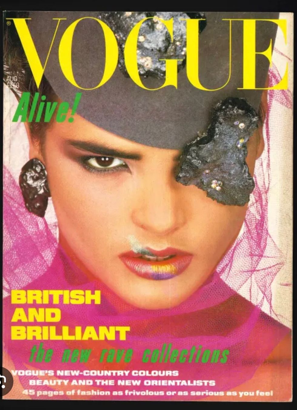 Interestingly, I have a copy of British Vogue from 1984, the August 1984 edition with Talisa Soto on the cover, photographed by Albert Watson, and basically, her look is kind of almost a whole fashion story of British designers that's entirely looking like it could have been in The Face. It's the same kind of technicolor, neon makeup, Andrew Logan jewelry. It wasn't the kind of British fashion of Lady Diana Spencer's designers. It was much more the kind of street culture of early '80s London. I mean, it's interesting because you just always assume that designers like Vivienne Westwood be all over British Vogue in the early '80s, but she really wasn't. I mean, she was seen as kind of marginal, but she wasn't marginal in the world of The Face or i-D.