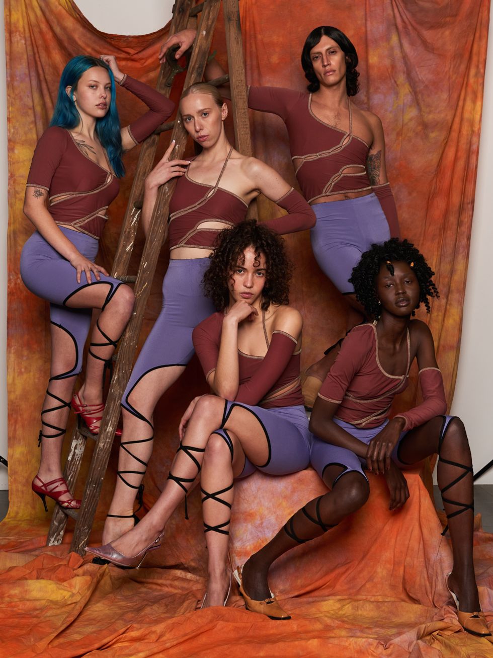 The Fall 2020 range is defined by bold textiles and one-of-a-kind fabric pairings. Stretched bodysuits speak to the label's ballet roots, while a long-sleeve patterned top and an oversized sage sweater pleasantly contrast billowing skirts and confidently cut biker shorts. Elsewhere, a lavender, form-flattering dress exudes maximal femininity next to ballet slippers tied to the knee.