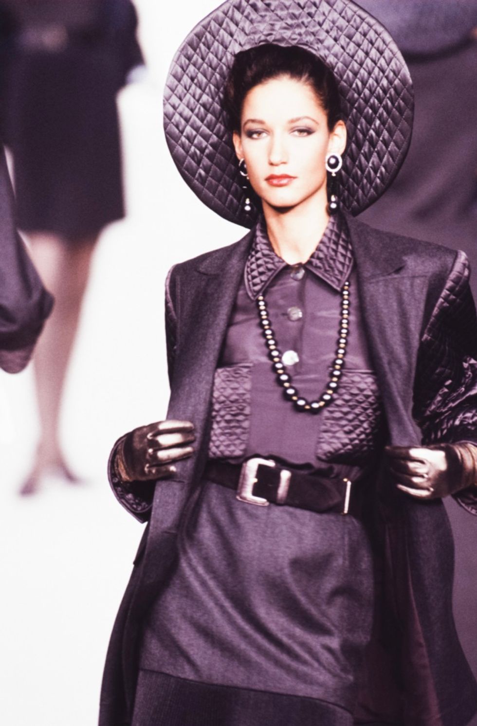 Claude Montana: My first two seasons walking for Claude were so very daunting to me, having studied all the images of his shows (as was my habit for all designers, even sneaking into a Complice show he designed back then in Milan), and I knew his were theatrical and static poses, which I felt awkward to assume.
