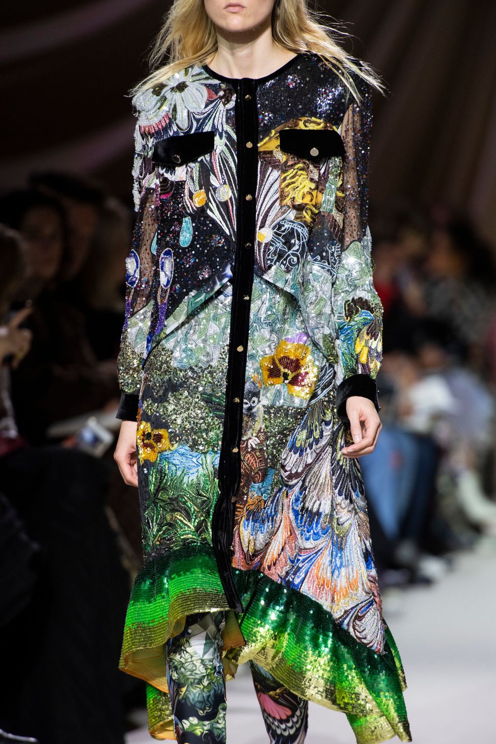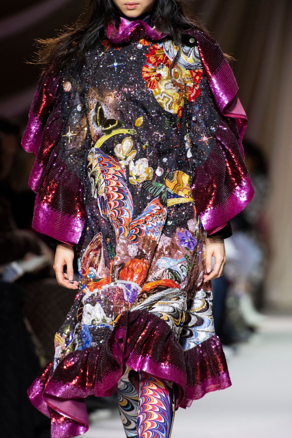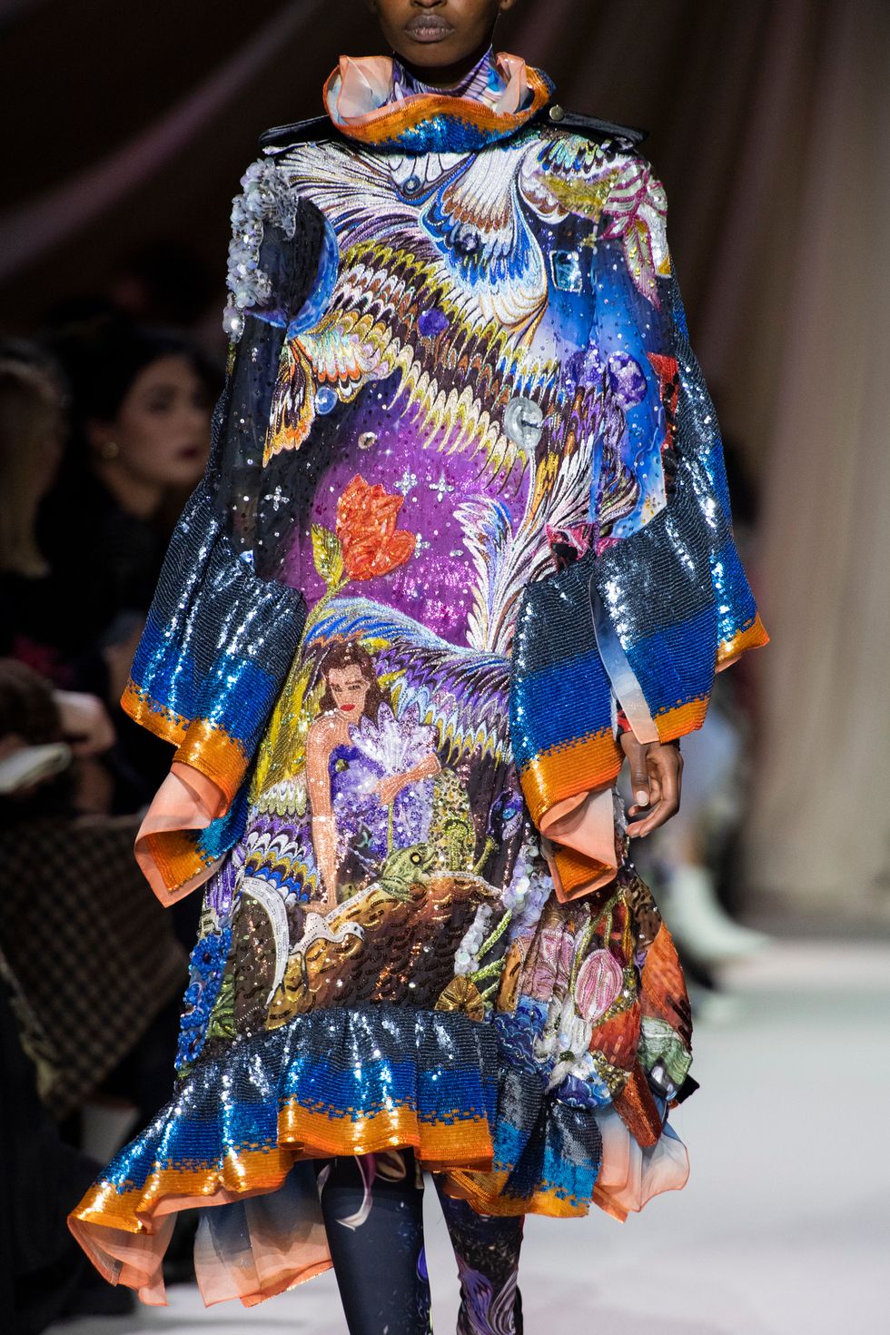 For fall 2019, designer Mary Katrantzou explored the myth of creation. Through an explosion of color, vibrant collages, crystals and ombre feathers Katrantzou created one of her most maximalist collections yet. Here's everything you need to know about the collection.