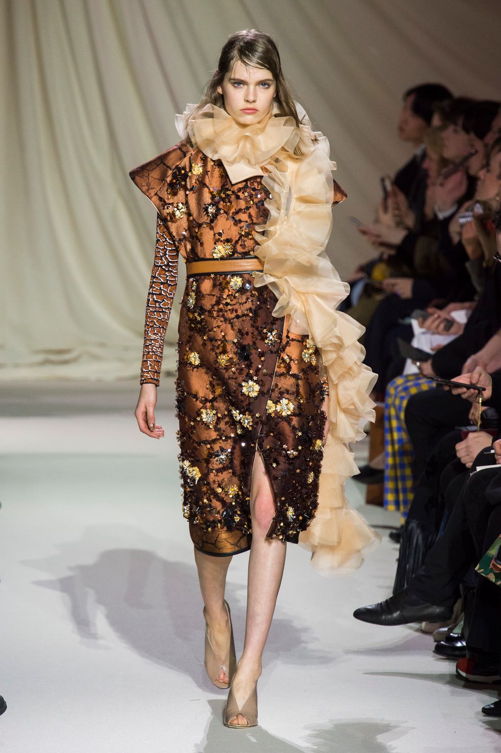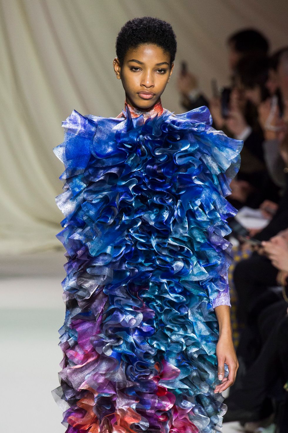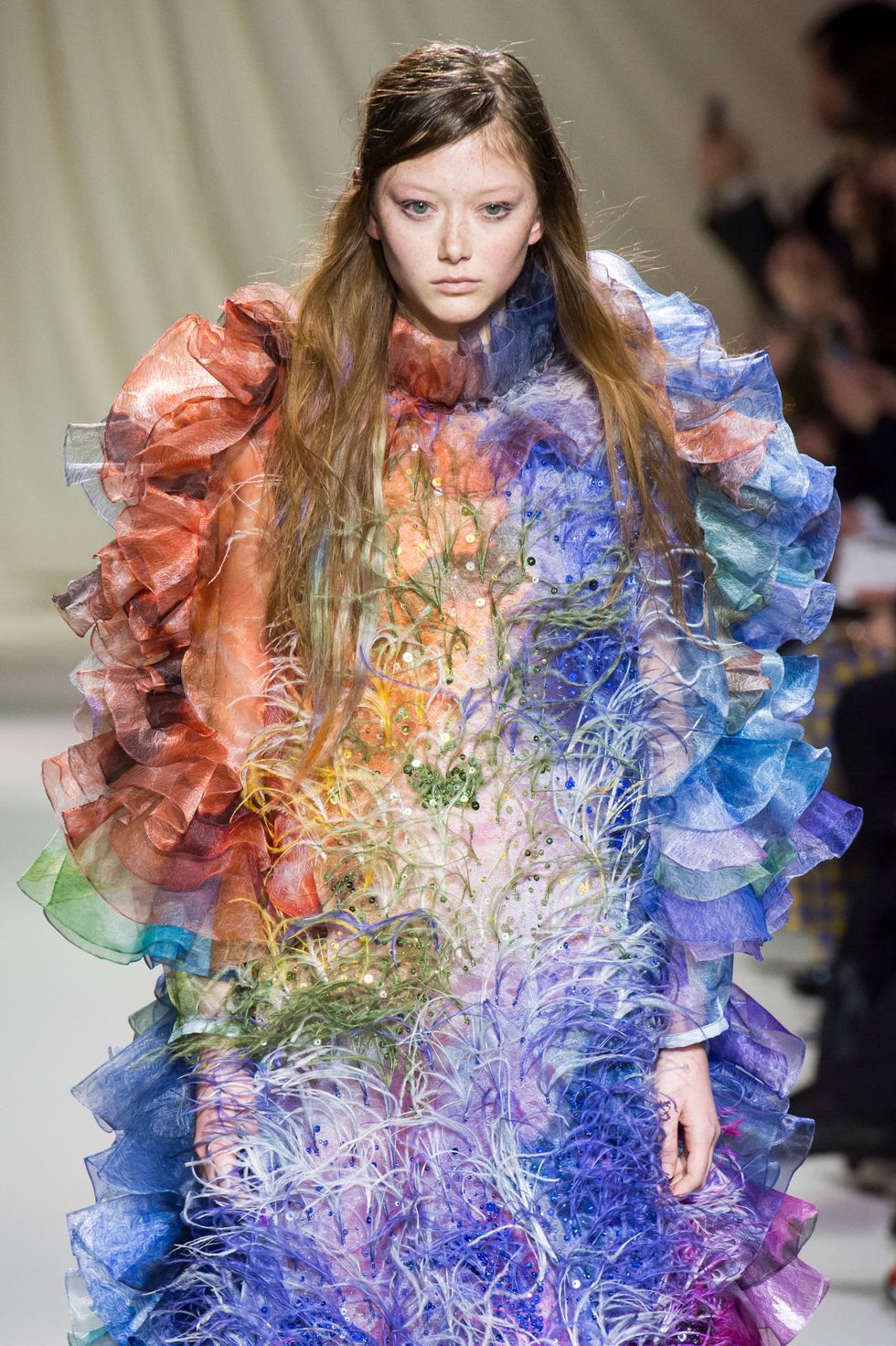 For fall 2019, designer Mary Katrantzou explored the myth of creation. Through an explosion of color, vibrant collages, crystals and ombre feathers Katrantzou created one of her most maximalist collections yet. Here's everything you need to know about the collection.