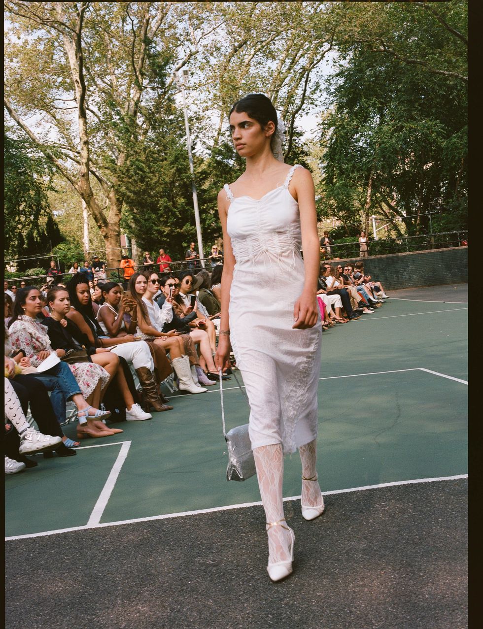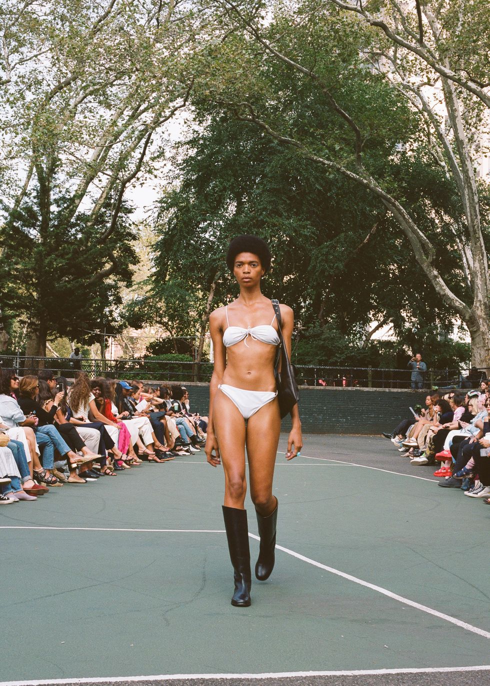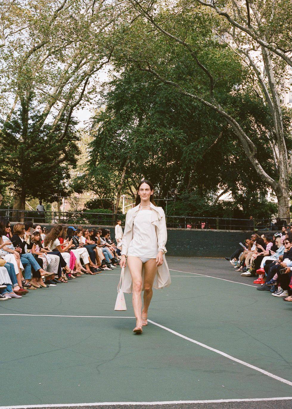 Chief downtown trendsetter Maryam Nassir Zadeh described her Spring 2020 collection to me as "'90s mod, Cassavetes city girl, beach rave, safari suiting," which is such an apt description that it feels foolish to expand upon it any further. Her show, held on Monday at Sara Delano Roosevelt park on the Lower East Side, was so soothing — the vacation colors, the fresh air, the presence of dogs and small children — as is the MNZ way. Everyone just looked so fresh and happy. The women of Dimes Square all clamored for seats.