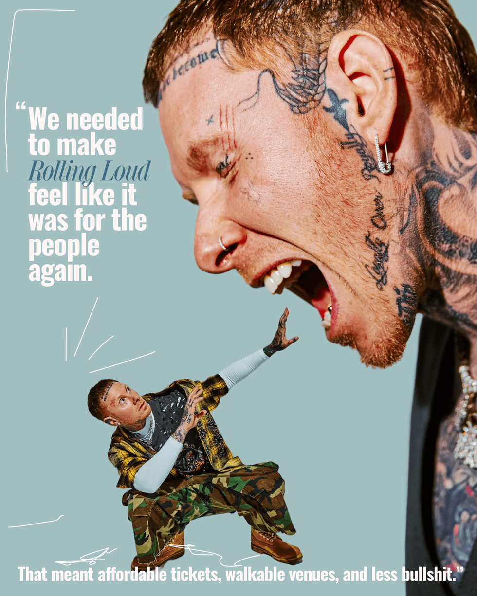 But music festivals have shape-shifted over the decades, going from an accessible and economical way to see acts both new and old in one space to a luxury experience. The inaugural Woodstock in 1969 was $18 for a weekend ($120 in 2026), and the first Lollapalooza only raised prices slightly to about $30 in 1991. Zingler and Cherif noticed the rising costs for fans and artists alike, and ultimately decided to go back to their humble roots for Rolling Loud’s tenth iteration by lowering ticket costs and moving the festival from Miami, which doesn’t have the proper infrastructure to host an event of this magnitude, to Orlando. It’s fitting, with Zingler remarking that the festival is akin to Disney World for underground rap fans.
