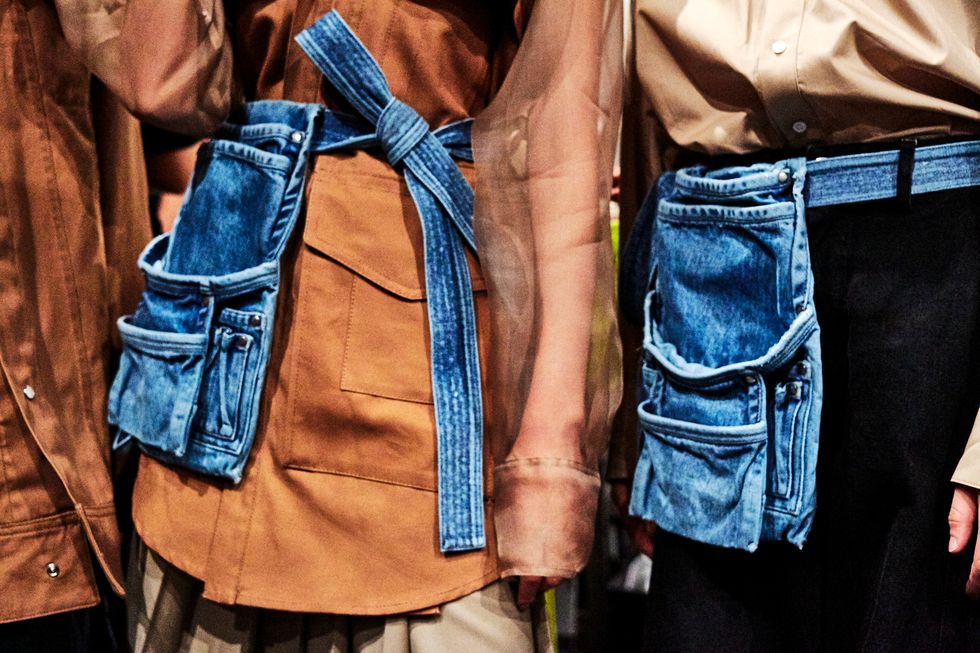 CFDA / Vogue Fashion Fund finalist Matthew Adams Dolan is known for reworking classic Americana in his namesake collection. "I was looking at the enduring legacy of workwear this season," the Massachusetts-born designer explains backstage at his spring 2019 runway show. In a nod to blue collar dress, Dolan crafted tool belt style waist packs out of stone-washed denim, silk, and cotton twill.