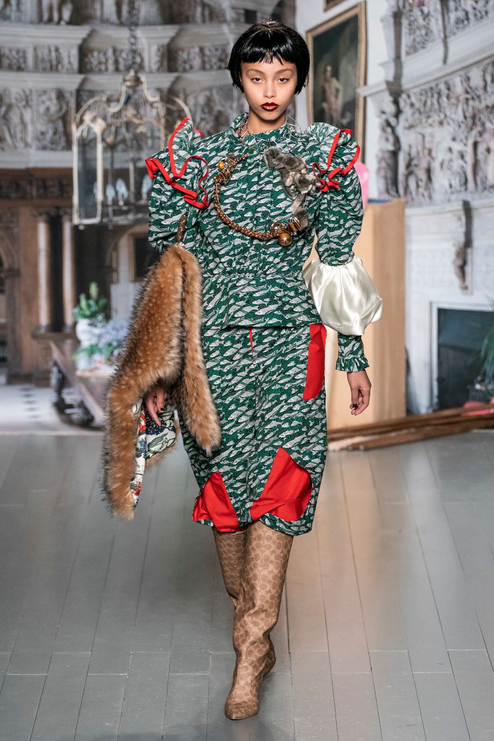 Inspired by a letter he received in autumn 2018 that was addressed to his deceased grandfather, designer Matt Bovan threw himself into researching the Lancastrian massacre against mythicism. As the show notes explained, the young designer, who has become of the most anticipated acts of London Fashion Week, became consumed with myth and folklore when designing his fall 2019 collection — so much so that the dark and brooding color ways and surreal prints took on lives of their own. Here's everything else you need to know about the show.