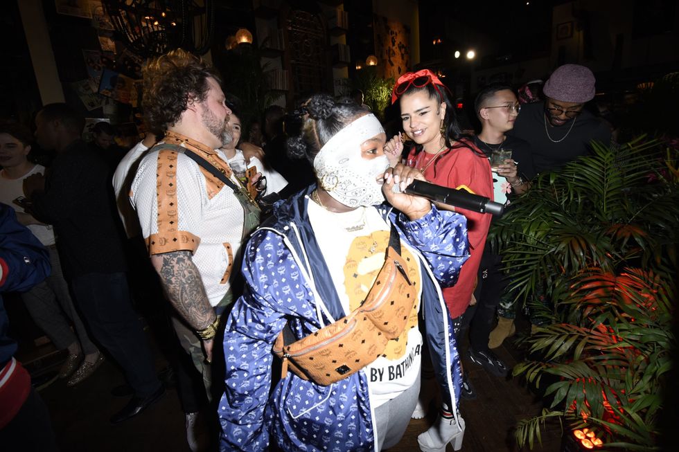 On Thursday, October 24th MCM x BAPE launched at West Hollywood's famous No Name venue. The invite-or-reservation-only space, known for its all-black facade, blocks out paparazzi and hangers-on, meaning MCM and BAPE celebrated the new collection in luxurious privacy. Celebrity attendees included Trey Songz, Ava Michelle, Jhene Aiko, Quincy Brown, Christian Combs, Don Benjamin and Liane V. DJ Brittany Sky spun tunes and guests were surprised by three songs performed live by elusive New York rapper Leikeli47. Guests mingled and perused the collection while nibbling on specialty hors d'oeuvres and jungle juice craft cocktails.